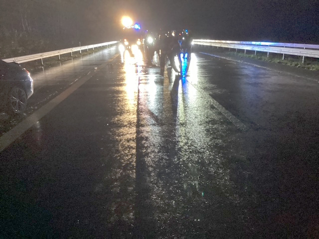 Gegen 18:11 Uhr wurde die Feuerwehr Gescher zu ihrem ersten Einsatz in 2026 auf die A31 in Fahrtrichtung Oberhausen zwischen Gescher und Borken zur Absicherung des Rettungsdienstes alarmiert. Plötzlich einsetzender Schneeregen verursachte zwei witterungsbedingte Unfälle, die innerhalb von 200 m passierten. Dabei gerieten bei beiden Unfällen jeweils 1 Fahrzeug unabhängig voneinander ins Rutschen und landeten in die Leitplanken. Beim zweiten Unfall berührte das rutschende Fahrzeug ein weiteres Fahrzeug, das ebenfalls beschädigt wurde. Keiner der Insassen wurde bei dem Unfall verletzt. Noch während die Einsatzkräfte des ersten Einsatzfahrzeugs begannen die Einsatzstellen zu erkunden und abzusichern ereignete sich im dahinter liegenden Verkehr ein weiterer Unfall etwa 300 m vor den anderen Unfallstellen. Hier konnte ein Fahrzeugführer nicht mehr rechtzeitig bremsen und fuhr auf ein vorausfahrendes Fahrzeug, das die Geschwindigkeit verkehrsbedingt verringerte, auf. Hierbei verletzte sich der Fahrzeugführer. Dieser wurde zunächst von nachgerückten Feuerwehrkräften versorgt. Anschließend übernahm der Rettungswagen vor Ort die weitere Versorgung und den Transport in das Krankenhaus Borken. ein weiterer alarmierter Rettungswagen untersuchte eine weitere Person, die jedoch an der Unfallstelle verblieb. An den drei Unfällen waren insgesamt 5 Fahrzeuge mit 13 Insassen beteiligt. Die Fahrbahn wurde zunächst komplett gesperrt. Im weiteren Verlauf konnte der Verkehr über die linke Spur an den Unfallstellen vorbeigeführt werden. Die Feuerwehr unterstützte die Polizei aufgrund der langgezogenen Einsatzstelle mit der Absicherung und half dem Abschleppdienst bei der Bergung insbesondere eines Fahrzeuges, dass sich zunächst mit dem Vorderrad unter der Leitplanke verkeilt hatte.
