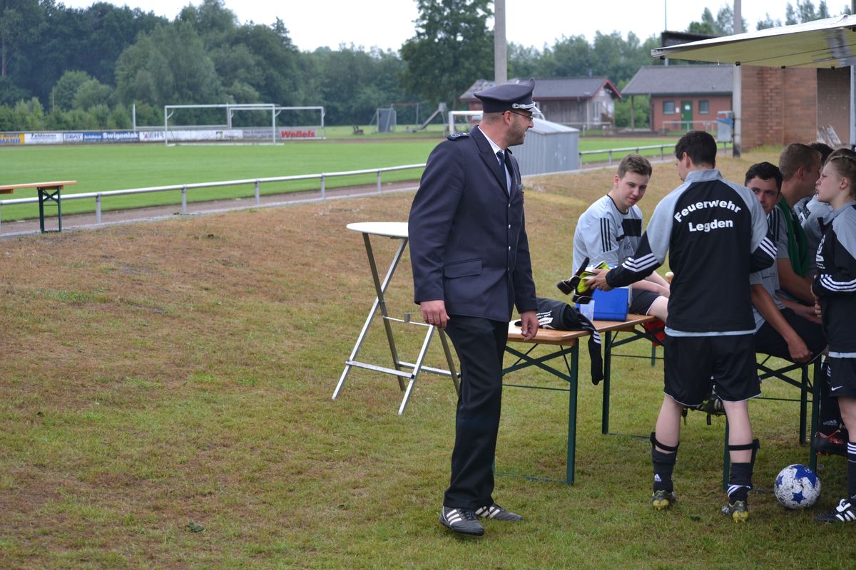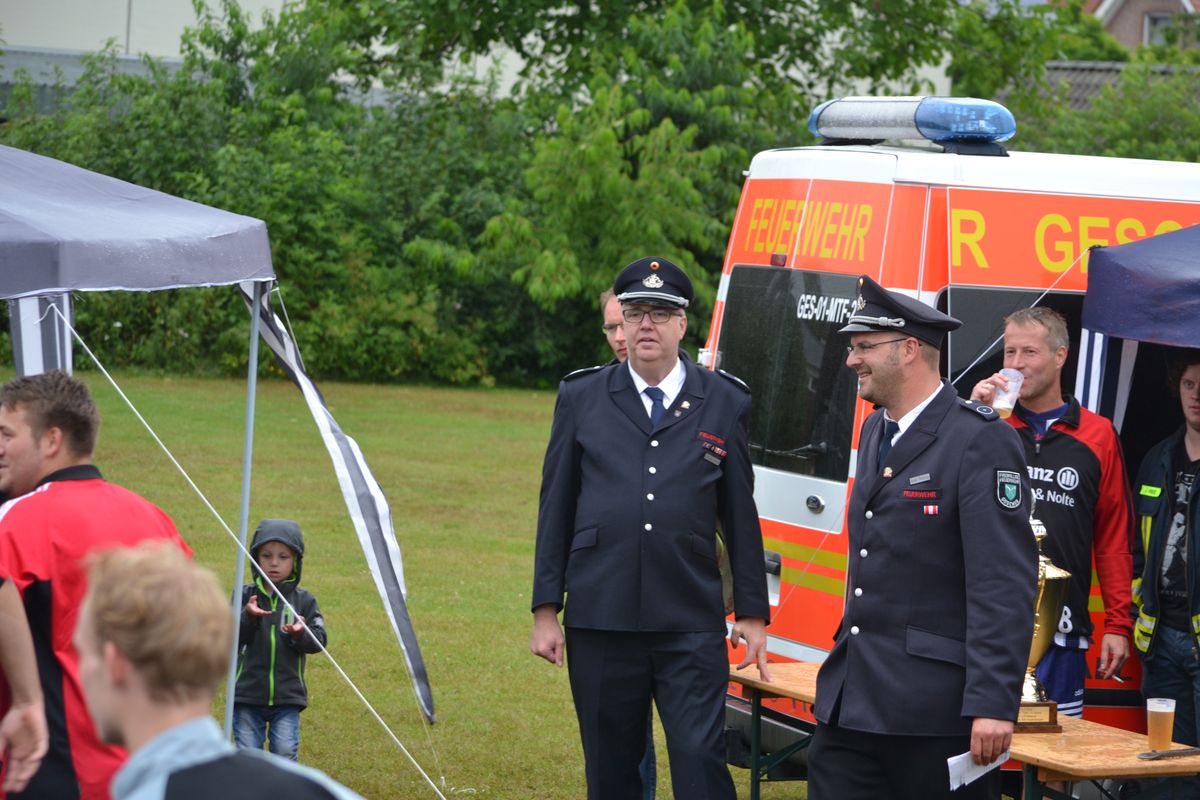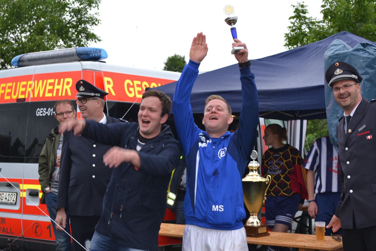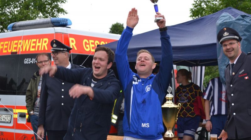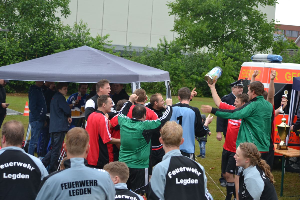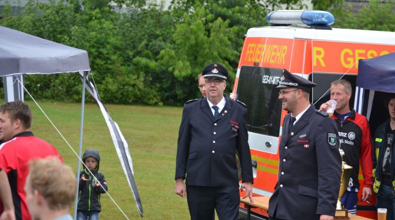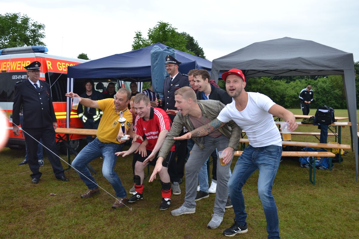 Im Rahmen des Dienstsportes veranstaltetet der Löschzug Gescher am letzten Wochenende ein Kreisweites Fußballturnier an dem auch eine Mannschaft aus Haaksbergen (Niederlande) teilnahm. Bei mäßigem Wetter konnten die Kameraden beweisen das sie auch mit dem runden Leder umgehen können. Nach zahlreichen, aber sehr fairen Spielen gingen die Kameraden des Löschzuges Wessum als Sieger vom Platz und konnten einem Pokal mit nach Hause nehmen. Bereits in der Mittagspause, stellten die Mitgereisten Löschzugführer Ihr können am Ball unter Beweis. Hier ging der Pokal an den Löschzugführer aus Heek, er konnte die meisten Elfmeter verwandeln.