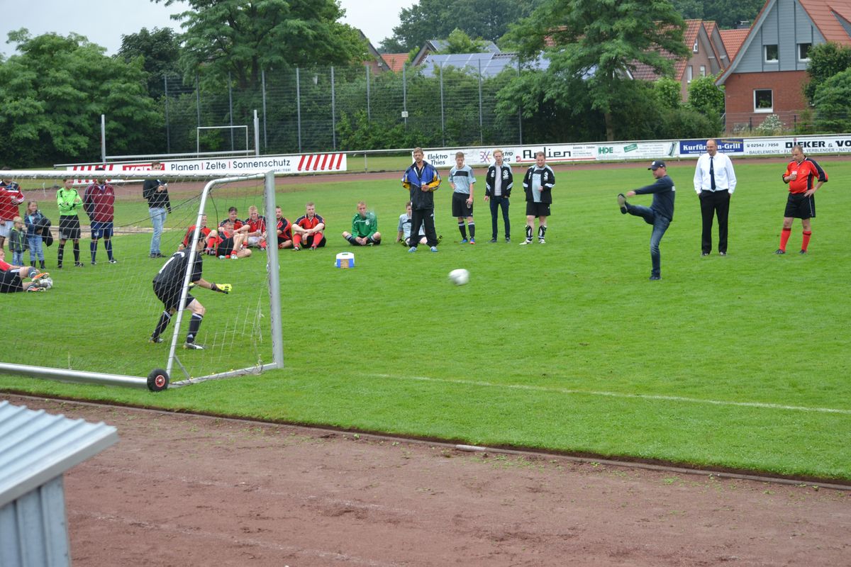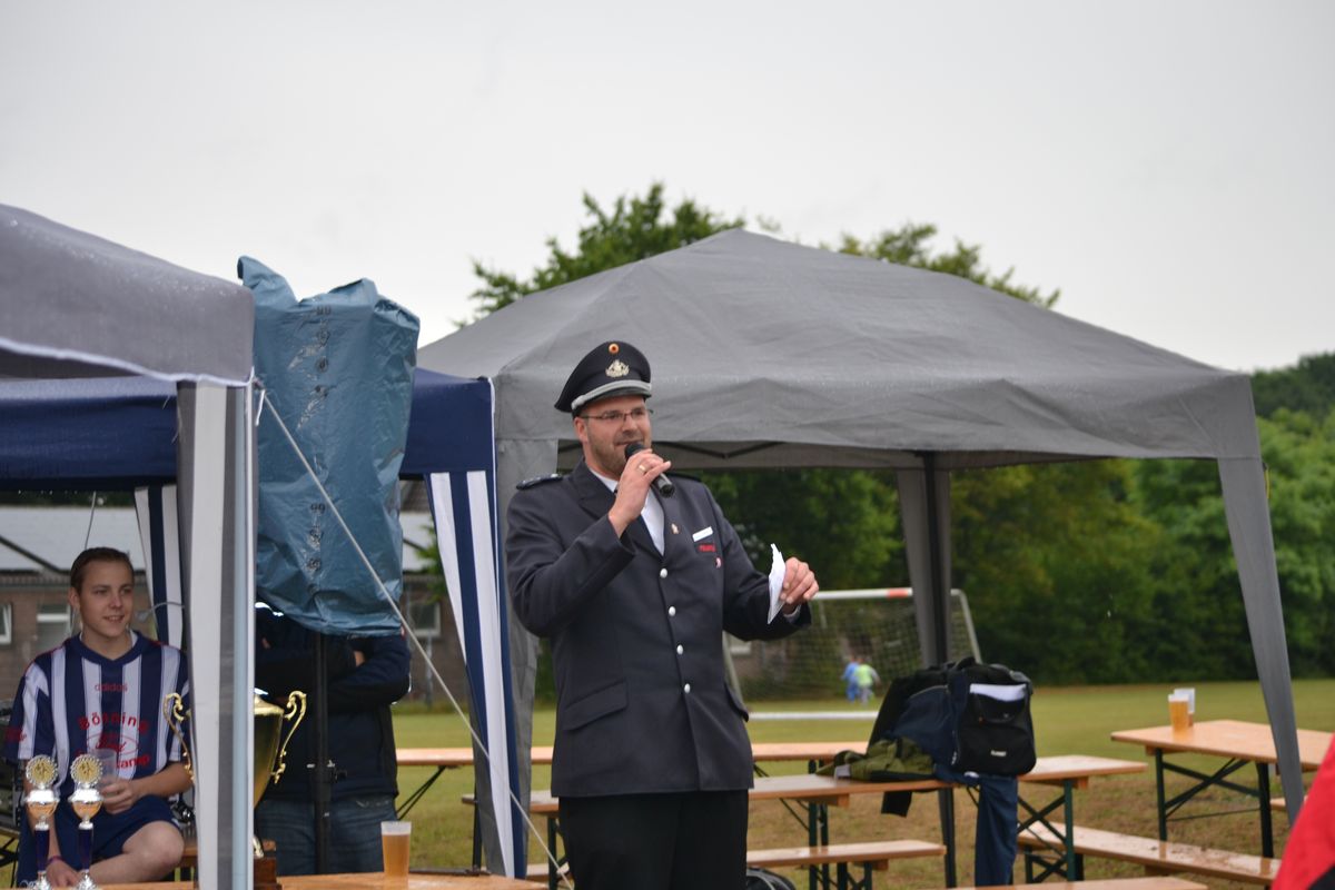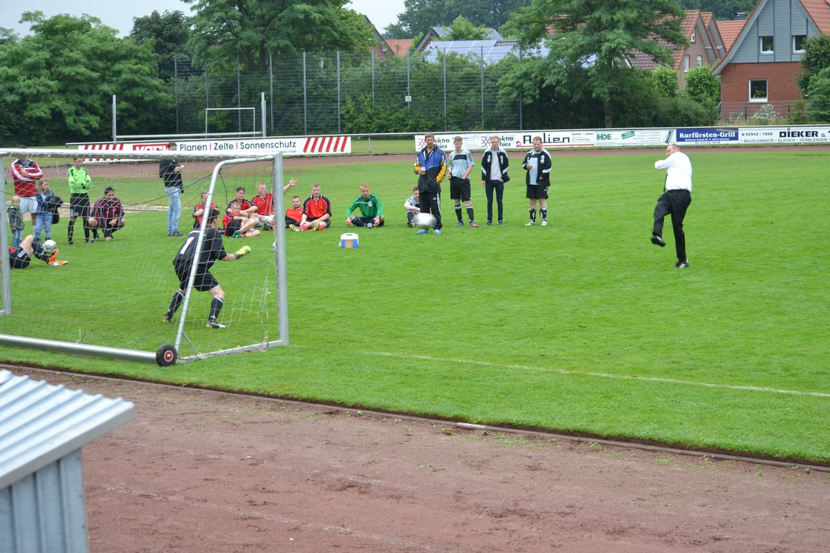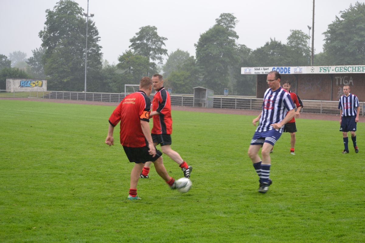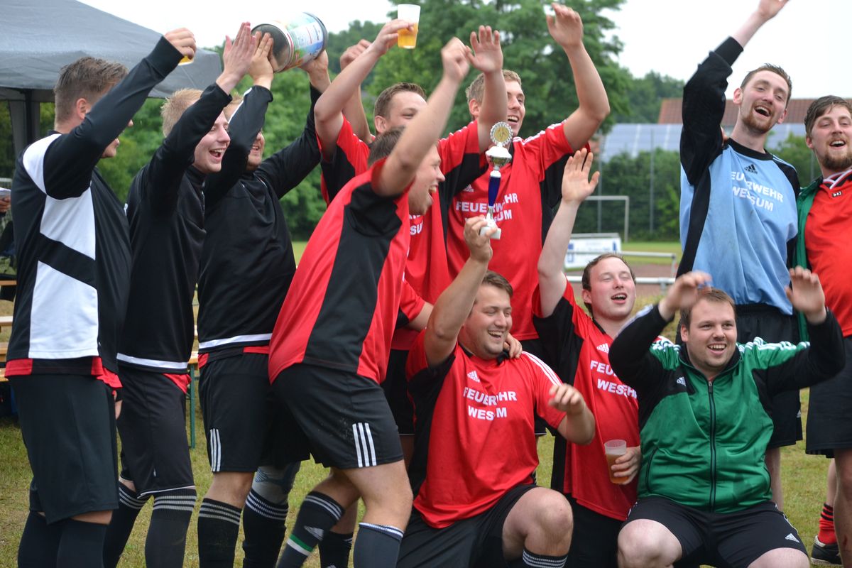 Im Rahmen des Dienstsportes veranstaltetet der Löschzug Gescher am letzten Wochenende ein Kreisweites Fußballturnier an dem auch eine Mannschaft aus Haaksbergen (Niederlande) teilnahm. Bei mäßigem Wetter konnten die Kameraden beweisen das sie auch mit dem runden Leder umgehen können. Nach zahlreichen, aber sehr fairen Spielen gingen die Kameraden des Löschzuges Wessum als Sieger vom Platz und konnten einem Pokal mit nach Hause nehmen. Bereits in der Mittagspause, stellten die Mitgereisten Löschzugführer Ihr können am Ball unter Beweis. Hier ging der Pokal an den Löschzugführer aus Heek, er konnte die meisten Elfmeter verwandeln.