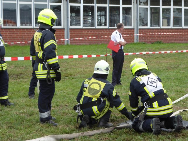 Mit insgesamt 4 Gruppen (3 aus Gescher und eine aus Hochmoor) besuchte die Feuerwehr Gescher am vergangenen Sonntag den Leistungsnachweis. Dort wurden sie gefordert beim Aufbau eines Löschangriffs auf Zeit, Fragen, Knoten sowie einem Erste Hilfe Part. Dabei werden alle Aufgaben als Team von bis zu 9 Gruppenmitglieder absolviert. Nur bei den Fragen muss jeder Teilnehmer einzeln antworten.