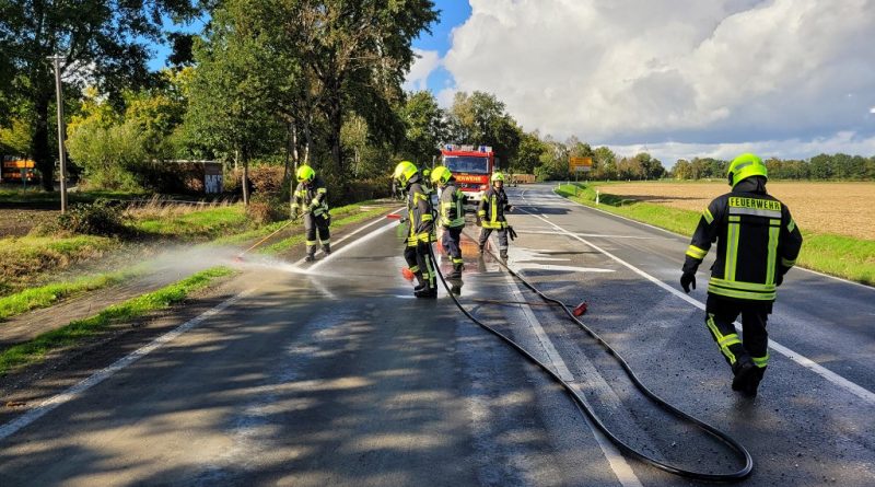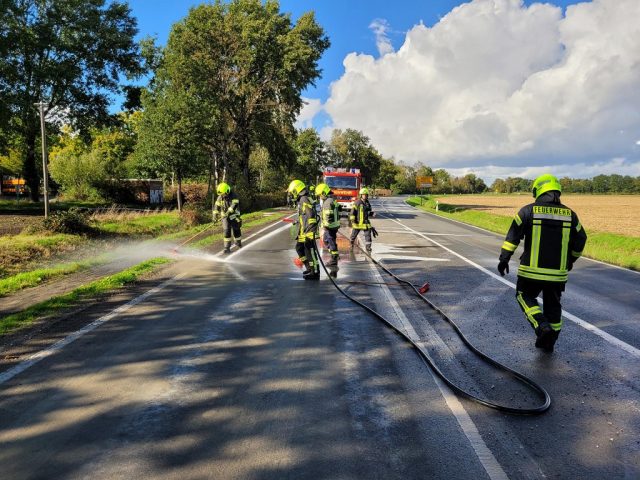 Eine Betonspur zog sich auf der L 608 ab der Einmündung Antoniusweg ca. 100m in Fahrtrichtung Reken. Die Einsatzstelle wurde abgesichert und die Fahrbahn mittels Straßenbesen und Schnellangriff gereinigt.