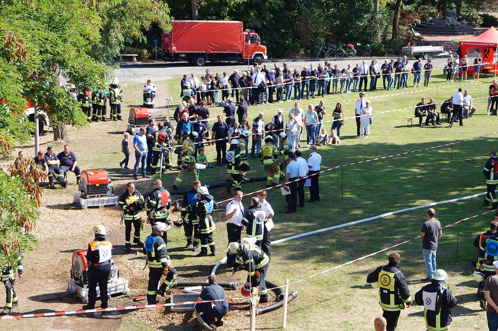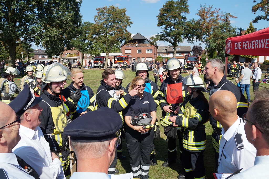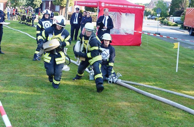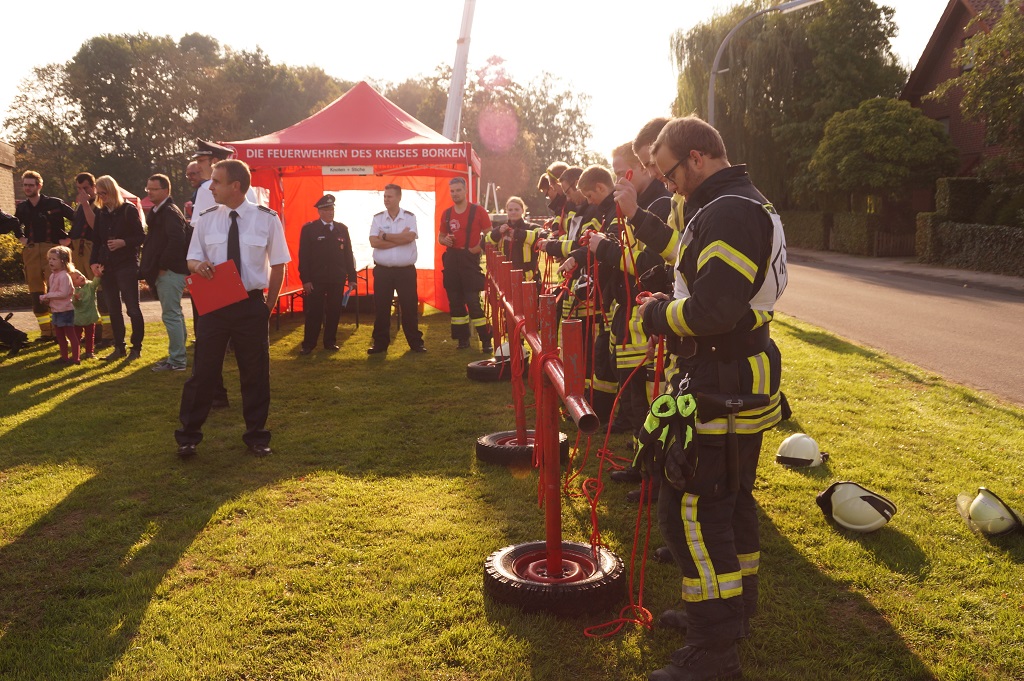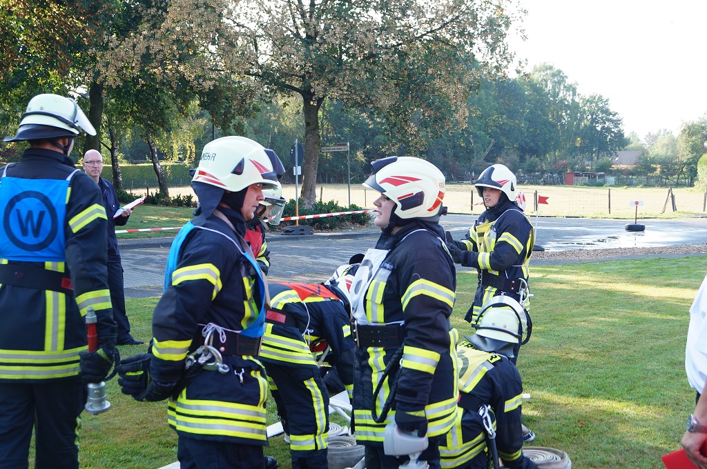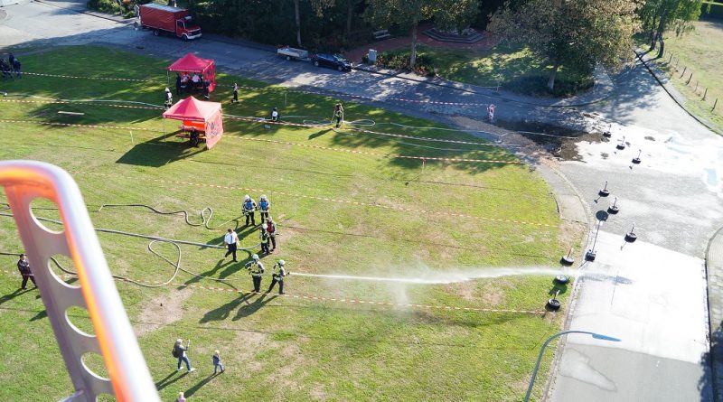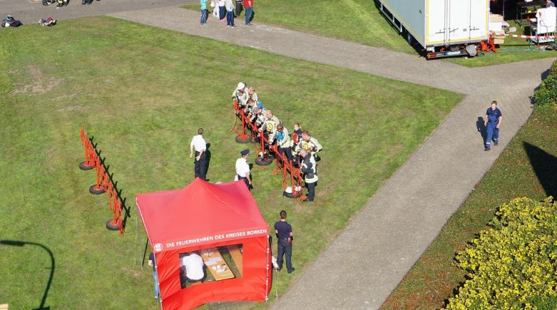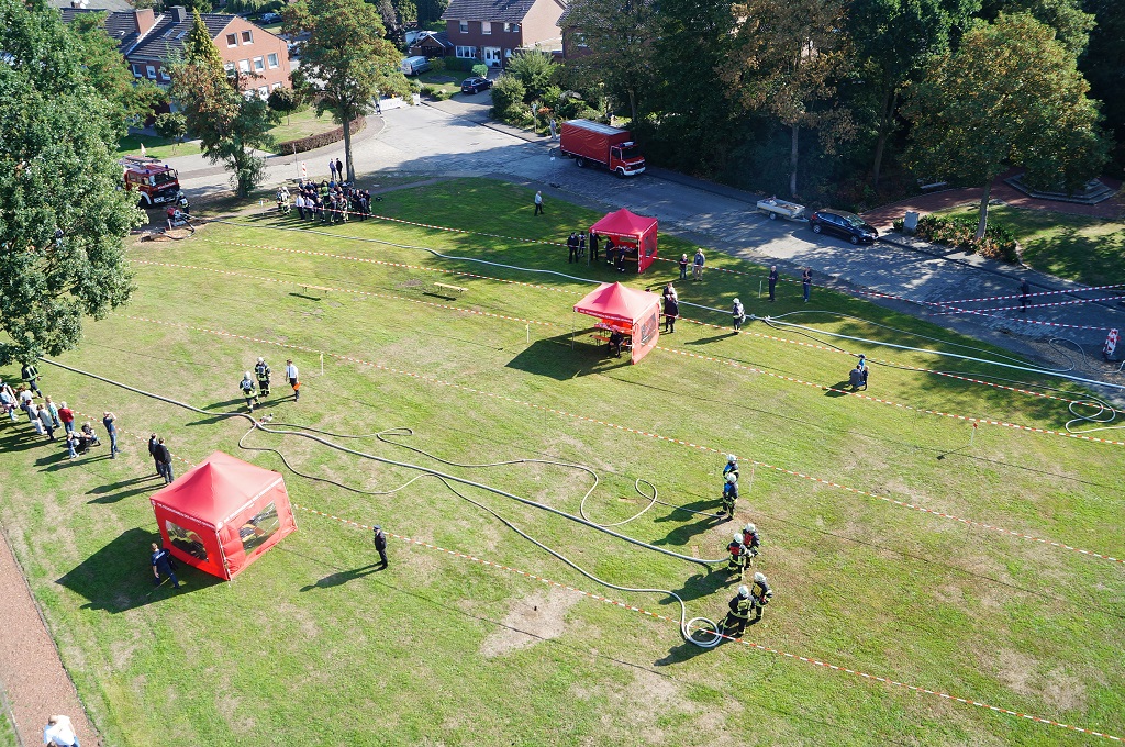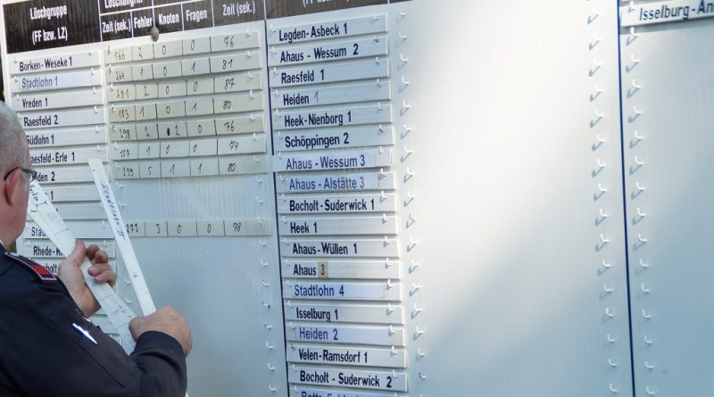 „Alle Freiwilligen Feuerwehren und Werkfeuerwehren des Kreises Borken nahmen an dem Leistungsnachweis teil“, berichtete Schulz. Ca. 80 Leistungsgruppen mit insgesamt etwa 720 Feuerwehrkameraden und –kameradinnen wurden daher über den Tag verteilt in Hochmoor gezählt.