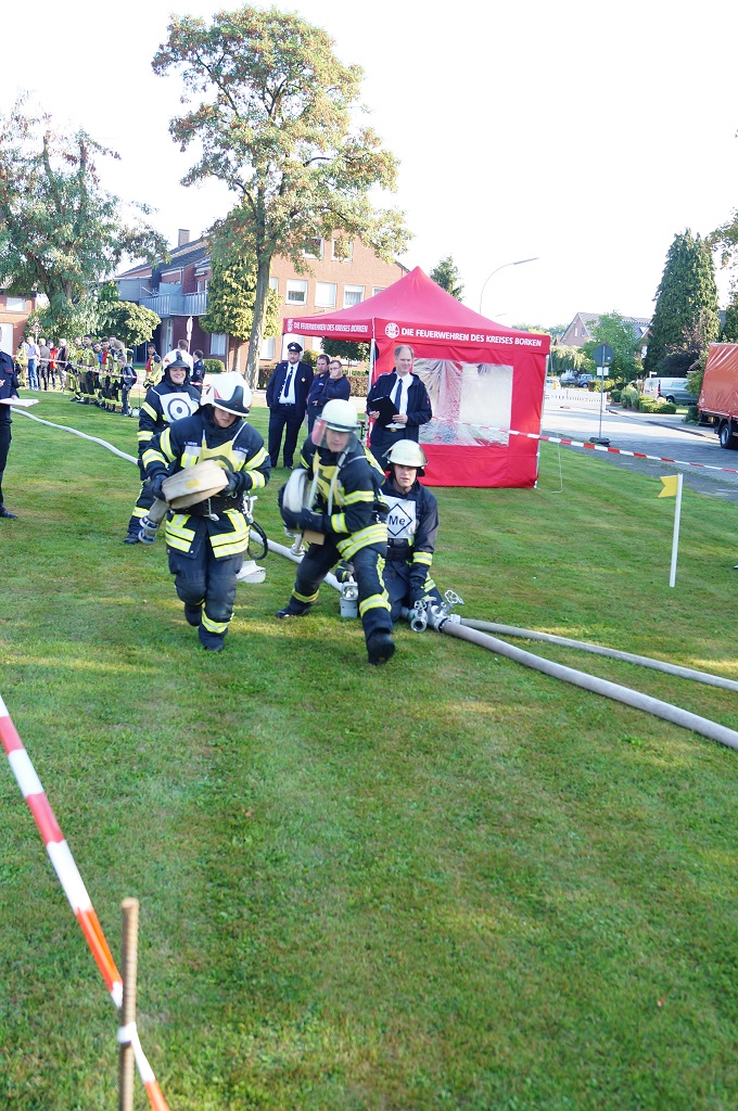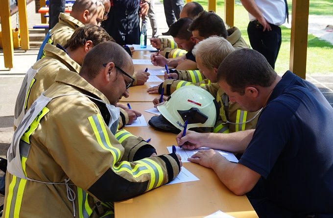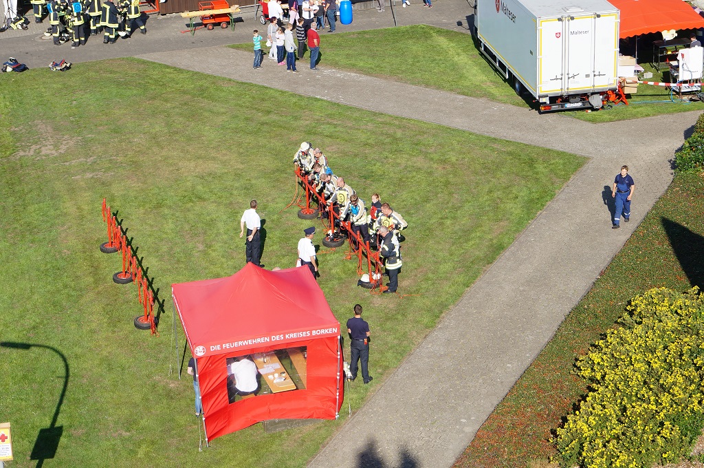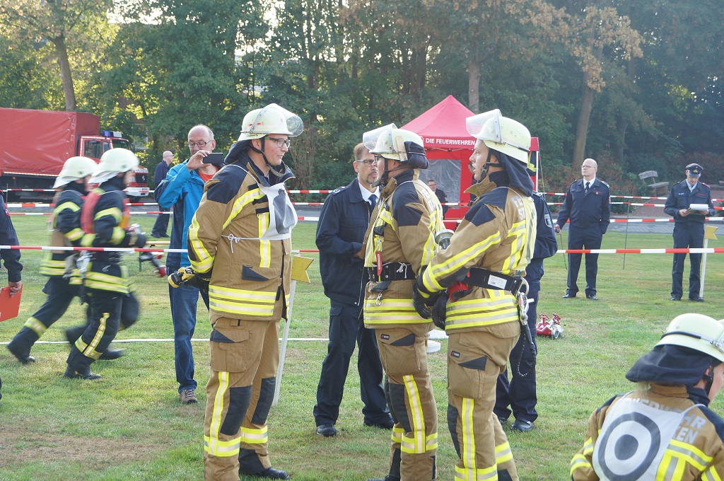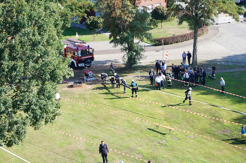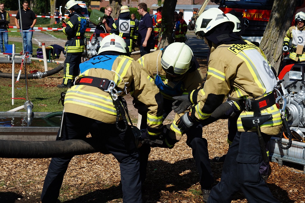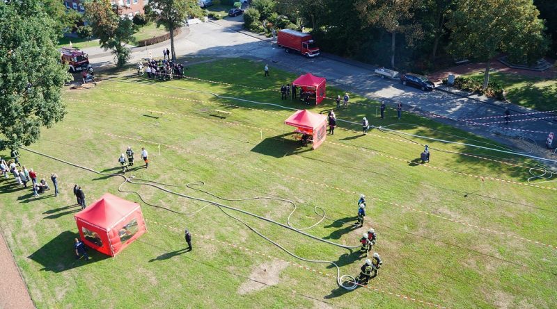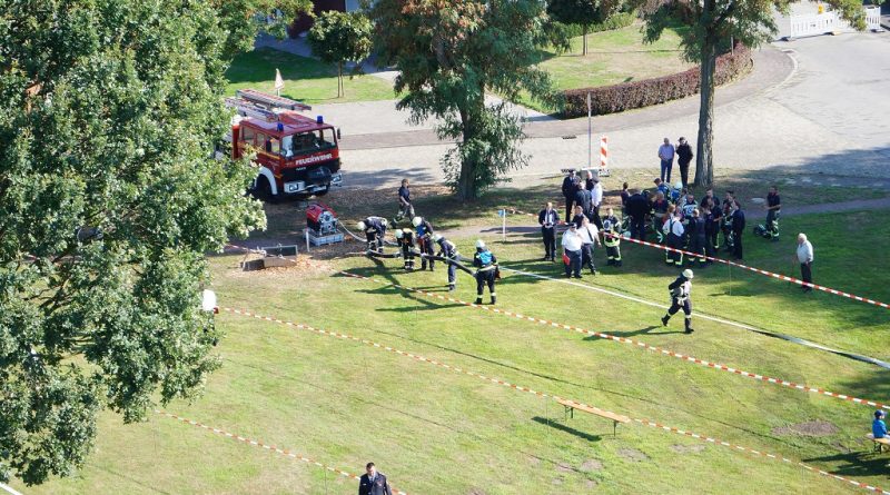 „Alle Freiwilligen Feuerwehren und Werkfeuerwehren des Kreises Borken nahmen an dem Leistungsnachweis teil“, berichtete Schulz. Ca. 80 Leistungsgruppen mit insgesamt etwa 720 Feuerwehrkameraden und –kameradinnen wurden daher über den Tag verteilt in Hochmoor gezählt.