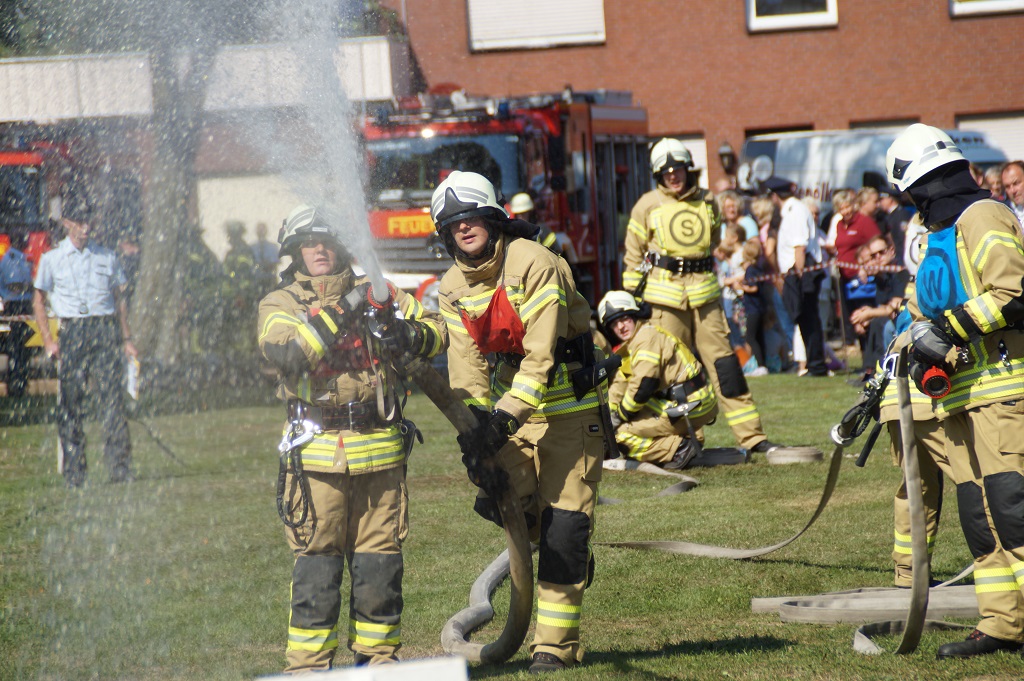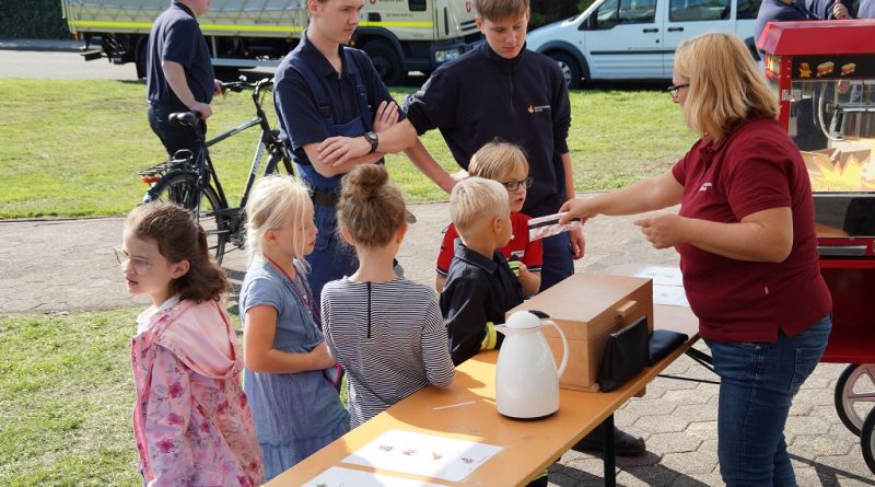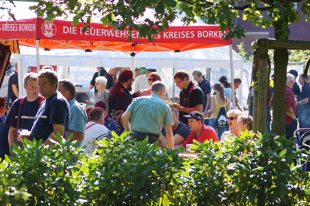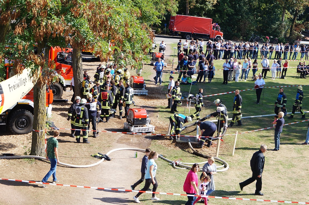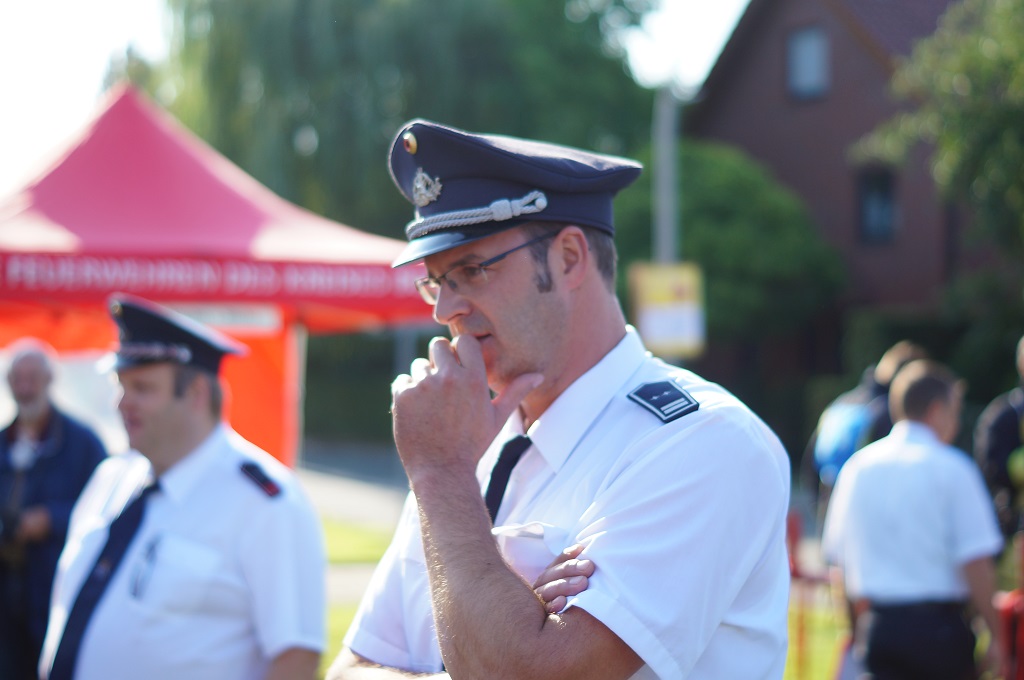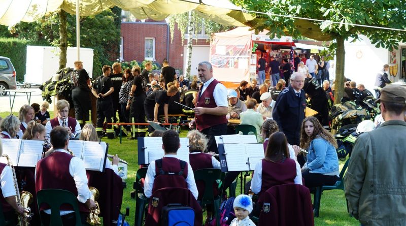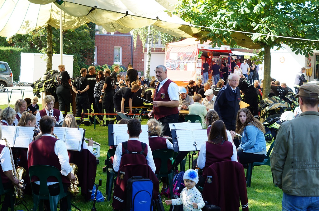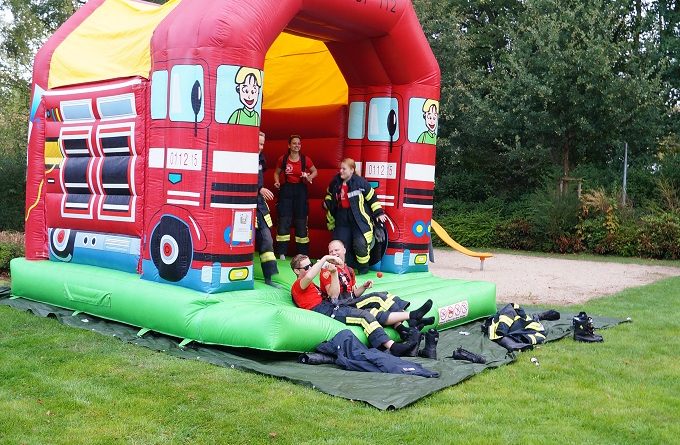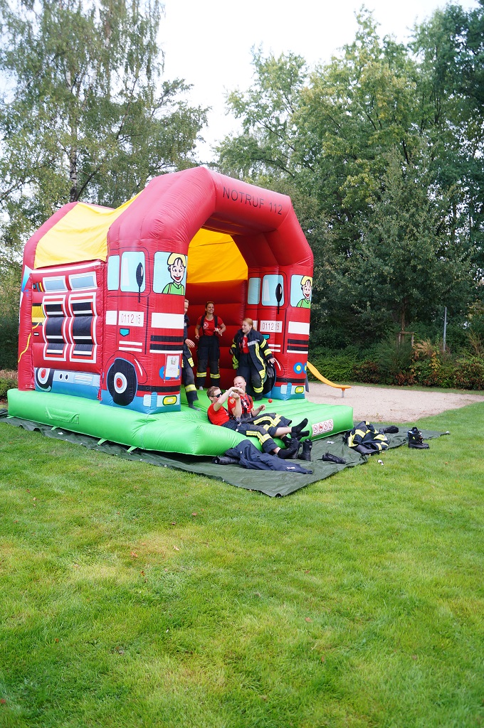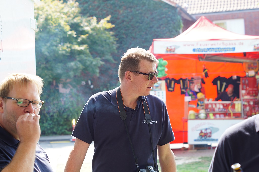 Ein buntes Bild ergaben Familien und Freunde der Aktiven sowie viele Besucher aus der Umgebung. Hüpfburg, Kinderschminken und Abenteuerspielplatz waren ein toller Spaß für die Kinder. Begleitet wurde die Veranstaltung durch einen DJ und das Jugendblasorchester Hochmoor. Der Heimatverein, der die Feuerwehr an einem Getränkewagen unterstützte, begrüßte zahlreiche Teilnehmer der 7. Glockenstadt-Radtour, den hier wurde der Stempel für den Nachweis der Teilnahme ausgegeben. Für die deftige Erbsensuppe, Grillgut, Kaffee und Kuchen war ebenfalls gesorgt.