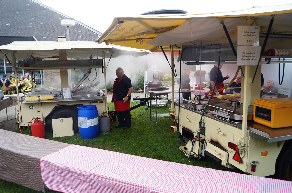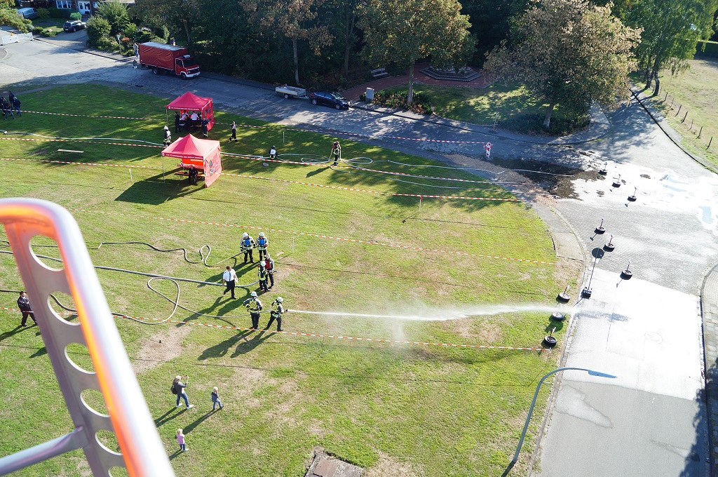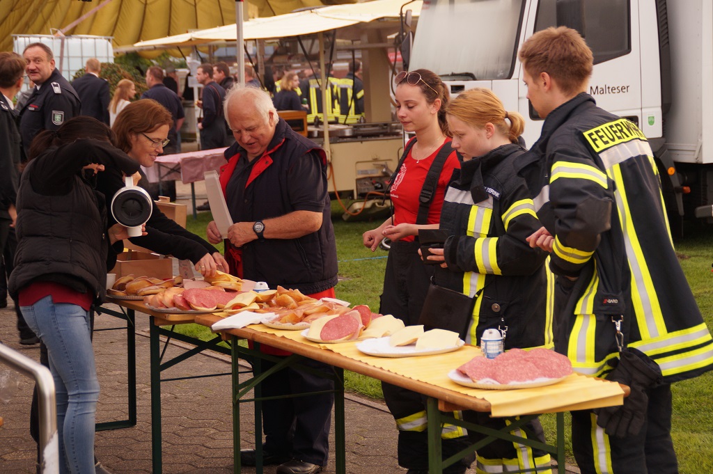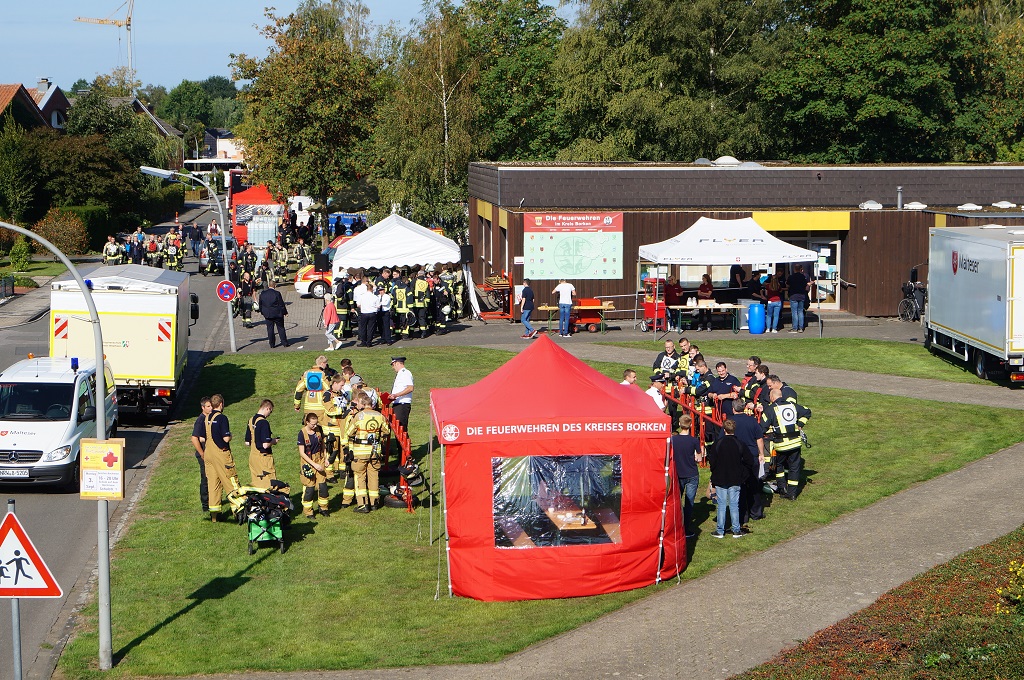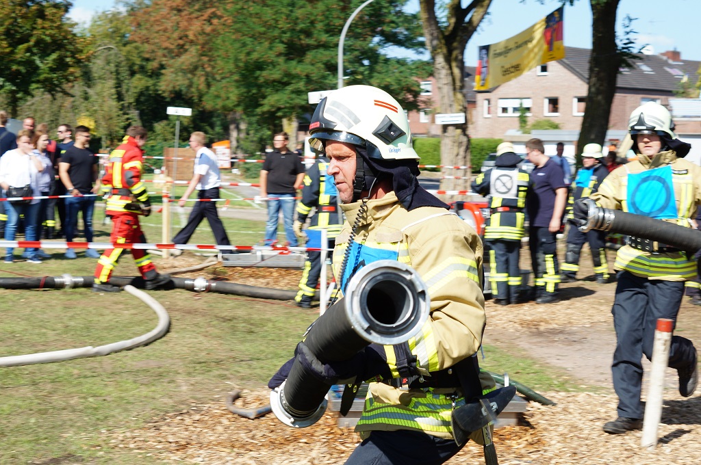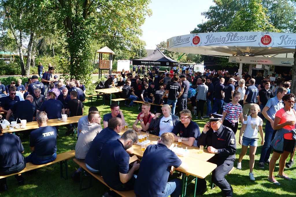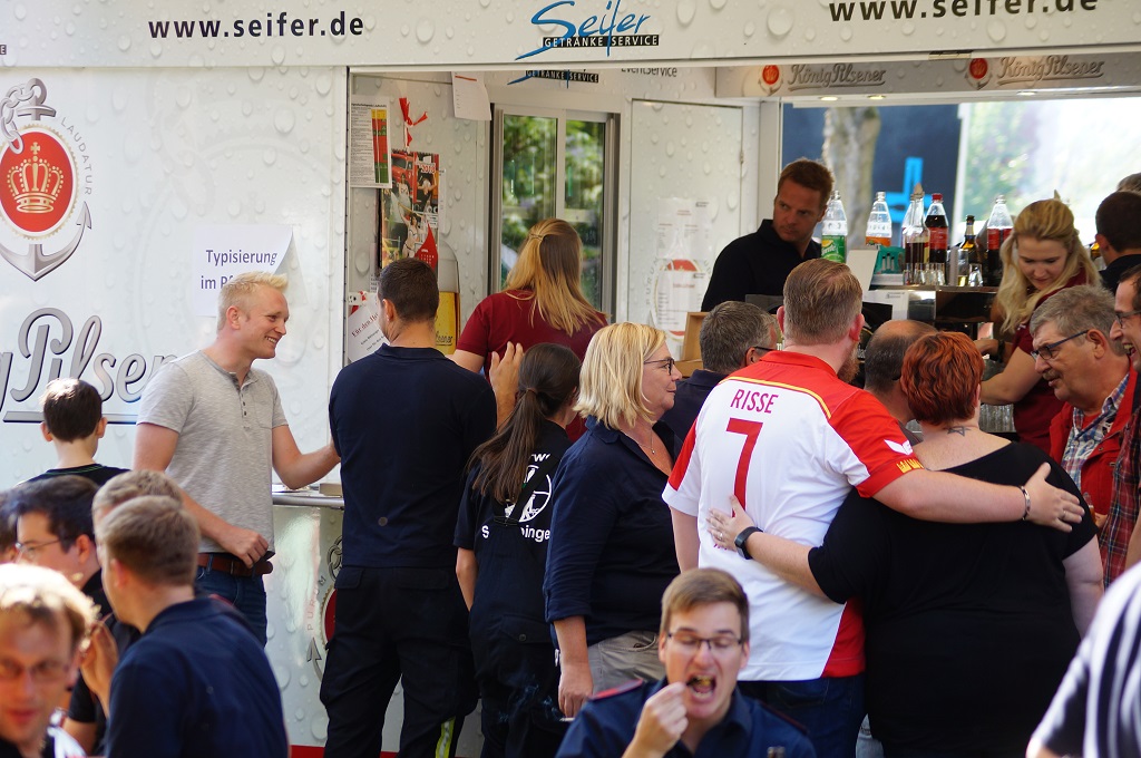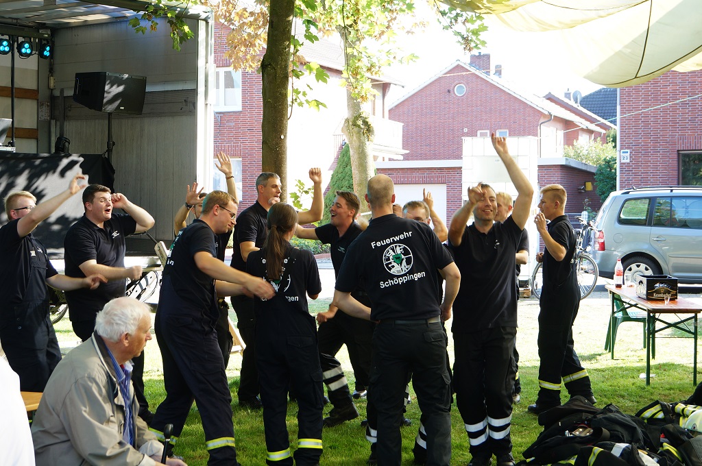Ein buntes Bild ergaben Familien und Freunde der Aktiven sowie viele Besucher aus der Umgebung. Hüpfburg, Kinderschminken und Abenteuerspielplatz waren ein toller Spaß für die Kinder. Begleitet wurde die Veranstaltung durch einen DJ und das Jugendblasorchester Hochmoor. Der Heimatverein, der die Feuerwehr an einem Getränkewagen unterstützte, begrüßte zahlreiche Teilnehmer der 7. Glockenstadt-Radtour, den hier wurde der Stempel für den Nachweis der Teilnahme ausgegeben. Für die deftige Erbsensuppe, Grillgut, Kaffee und Kuchen war ebenfalls gesorgt.