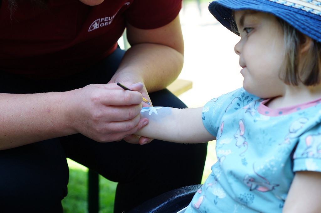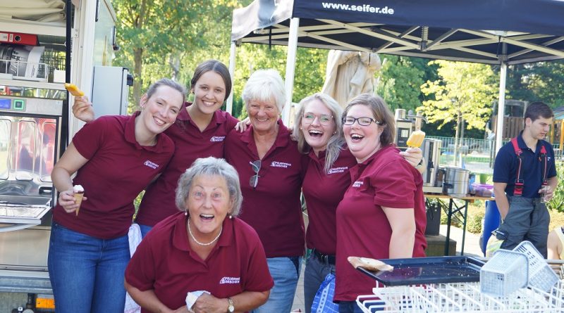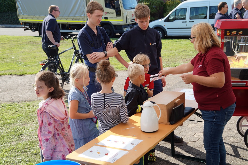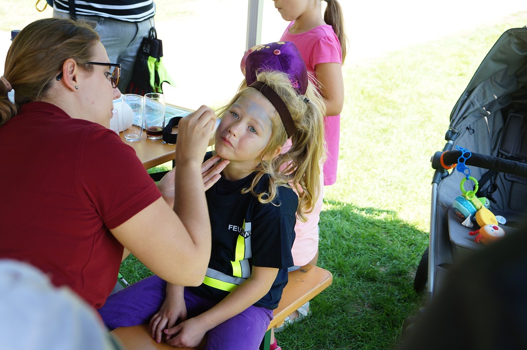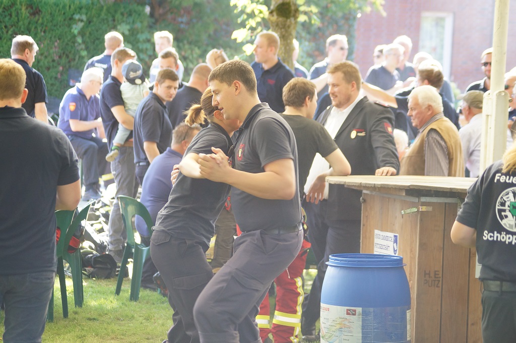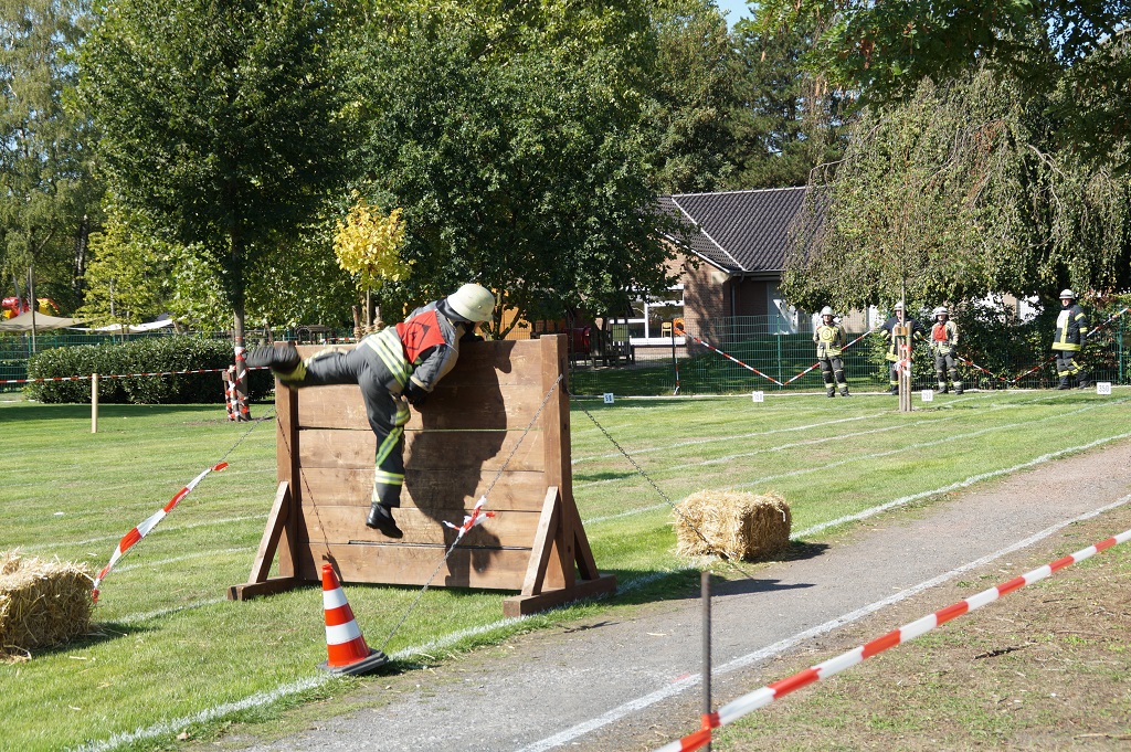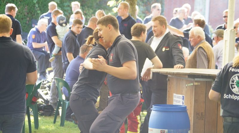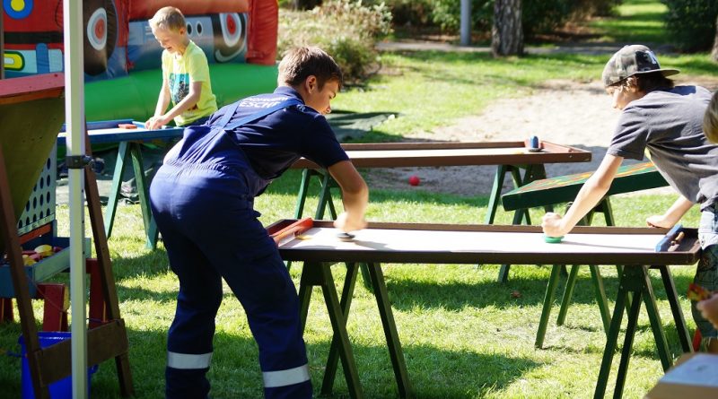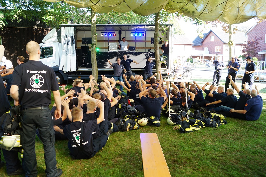 Ein buntes Bild ergaben Familien und Freunde der Aktiven sowie viele Besucher aus der Umgebung. Hüpfburg, Kinderschminken und Abenteuerspielplatz waren ein toller Spaß für die Kinder. Begleitet wurde die Veranstaltung durch einen DJ und das Jugendblasorchester Hochmoor. Der Heimatverein, der die Feuerwehr an einem Getränkewagen unterstützte, begrüßte zahlreiche Teilnehmer der 7. Glockenstadt-Radtour, den hier wurde der Stempel für den Nachweis der Teilnahme ausgegeben. Für die deftige Erbsensuppe, Grillgut, Kaffee und Kuchen war ebenfalls gesorgt.