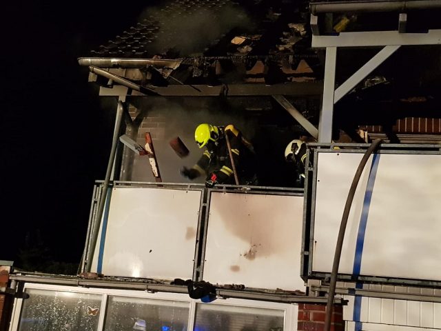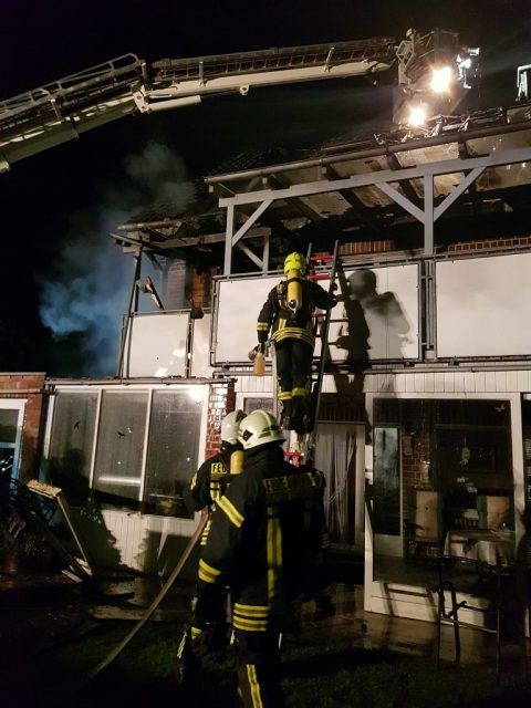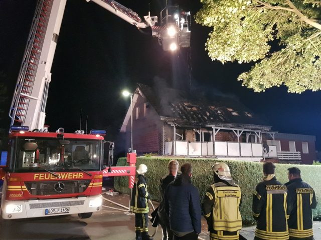 Gegen 0:30 Uhr wurde die Feuerwehr Gescher zu einem Wohnhausbrand nach Stadtlohn zur Unterstützung gerufen, da vor allen Dingen noch zusätzliche Atemschutzgeräteträger benötigt wurden. Da das Feuer sich bereits auf den Dachstuhl des Hauses aufgebreitet hatte rückte zusätzlich der Teleskopmast der Feuerwehr Gescher aus, musste dann jedoch nicht mehr tätig werden.