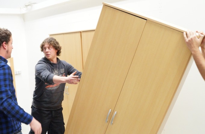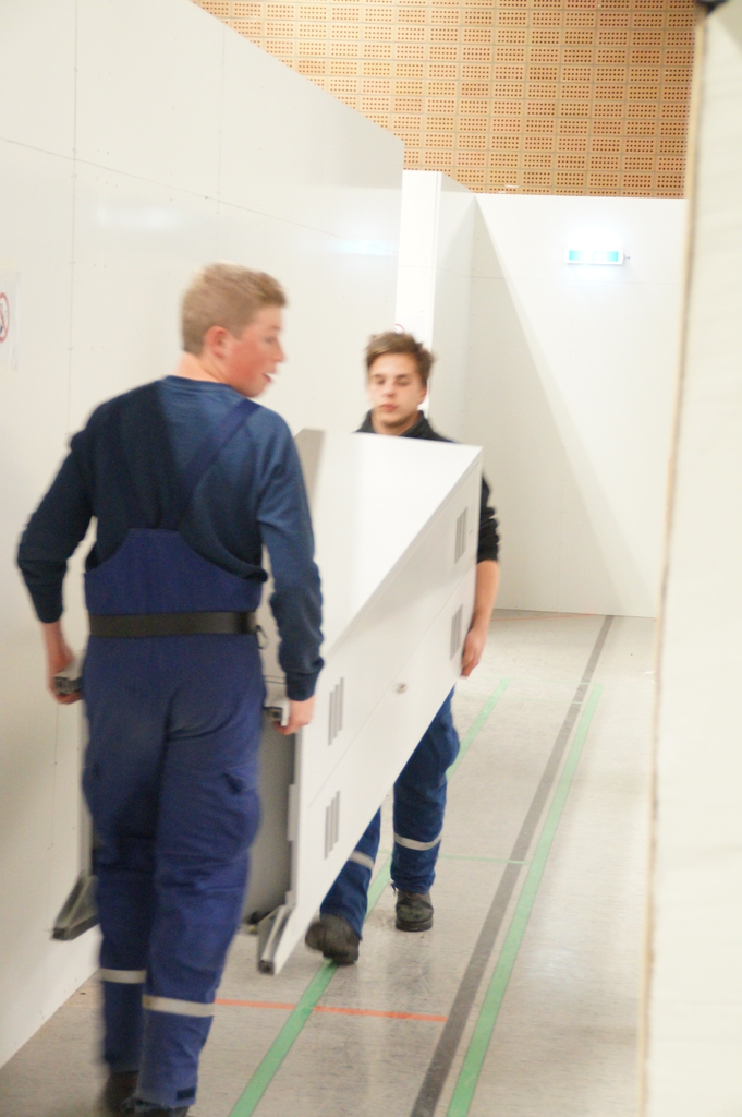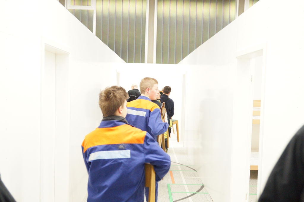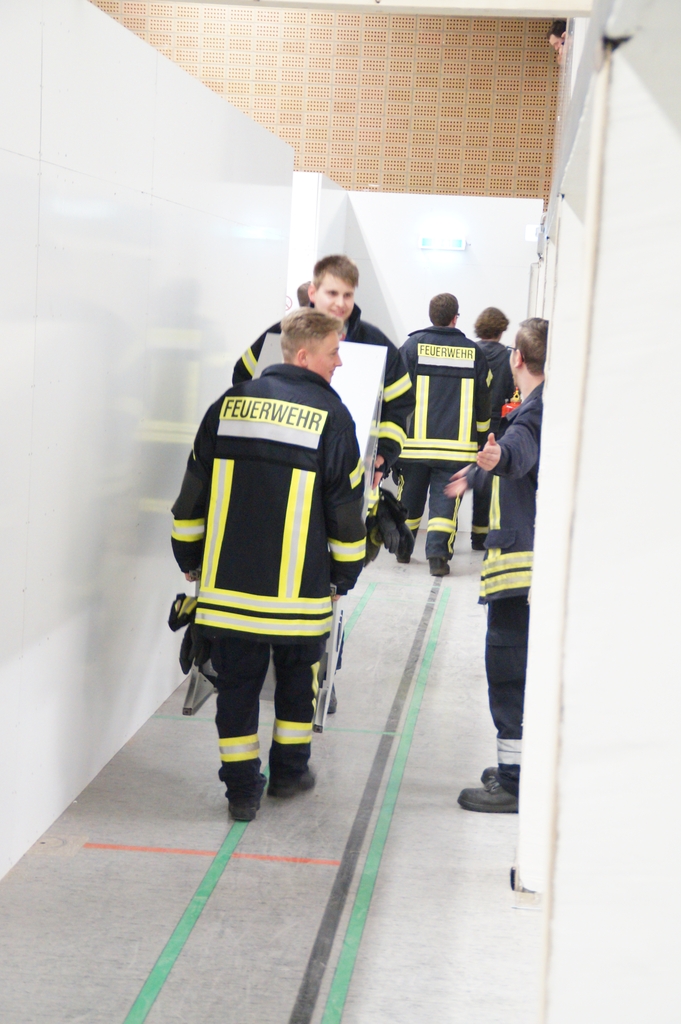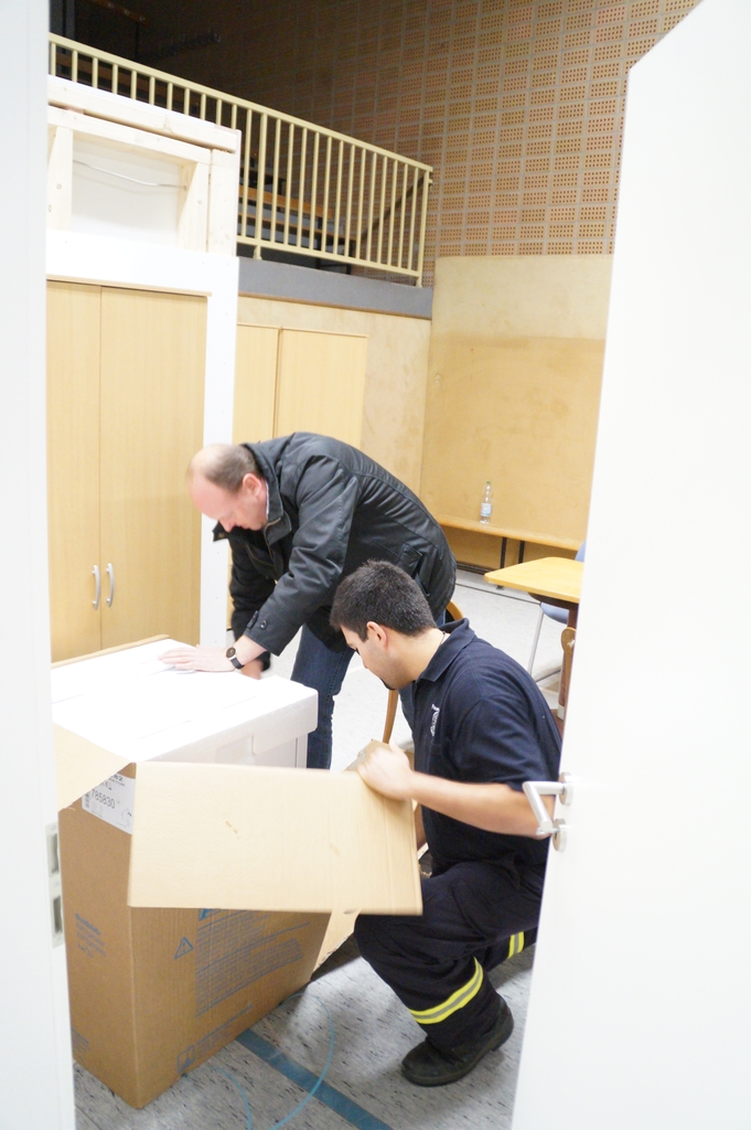 Nachdem die Don Bosco Turnhalle von einer Fachfirma entsprechend umgebaut wurde um eine Unterkunft für Flüchtlinge zu bieten, mussten die Räume noch ausgestattet werden. So trafen sich mehr als 25 Feuerwehrkameraden und Kameradinnen auch aus der Jugendfeuerwehr am Montag abend um die einzelnen Räume entsprechend einzurichten und so den Ordnungsamtsleiter Christian Prost zu unterstützen. So wurden Waschmaschinen und Kühlschränke aufgestellt. Auch wurden Tische und Stühle verteilt und abschließbare Schrankspinde aufgestellt. Zudem mussten einige Betten teilweise zerlegt, umgestellt und wieder aufgebaut werden. Neben der Wohneinrichtung wurden aber auch mehrsprachige Verhaltenshinsweise bei Bränden aufgehangen sowie Feuerlöscher montiert. Die Flüchtlingsunterkunft wird voraussichtlich schon in dieser Woche mit den ersten Flüchtlingen belegt werden.