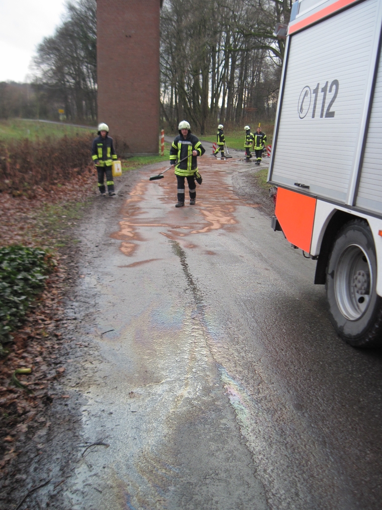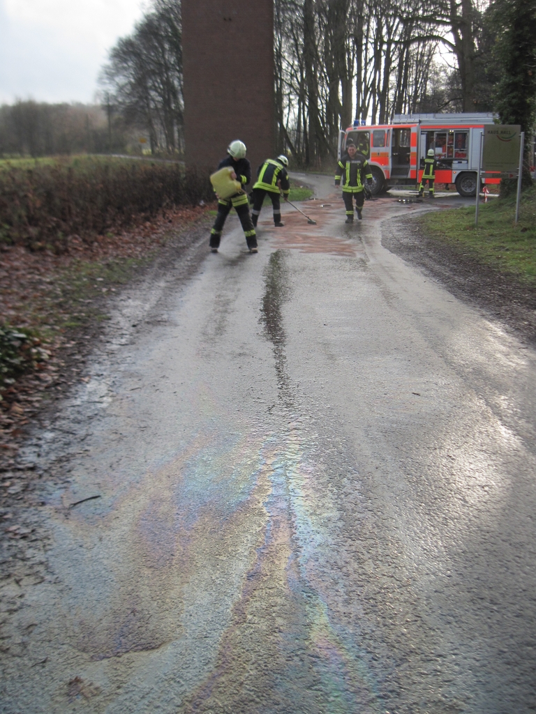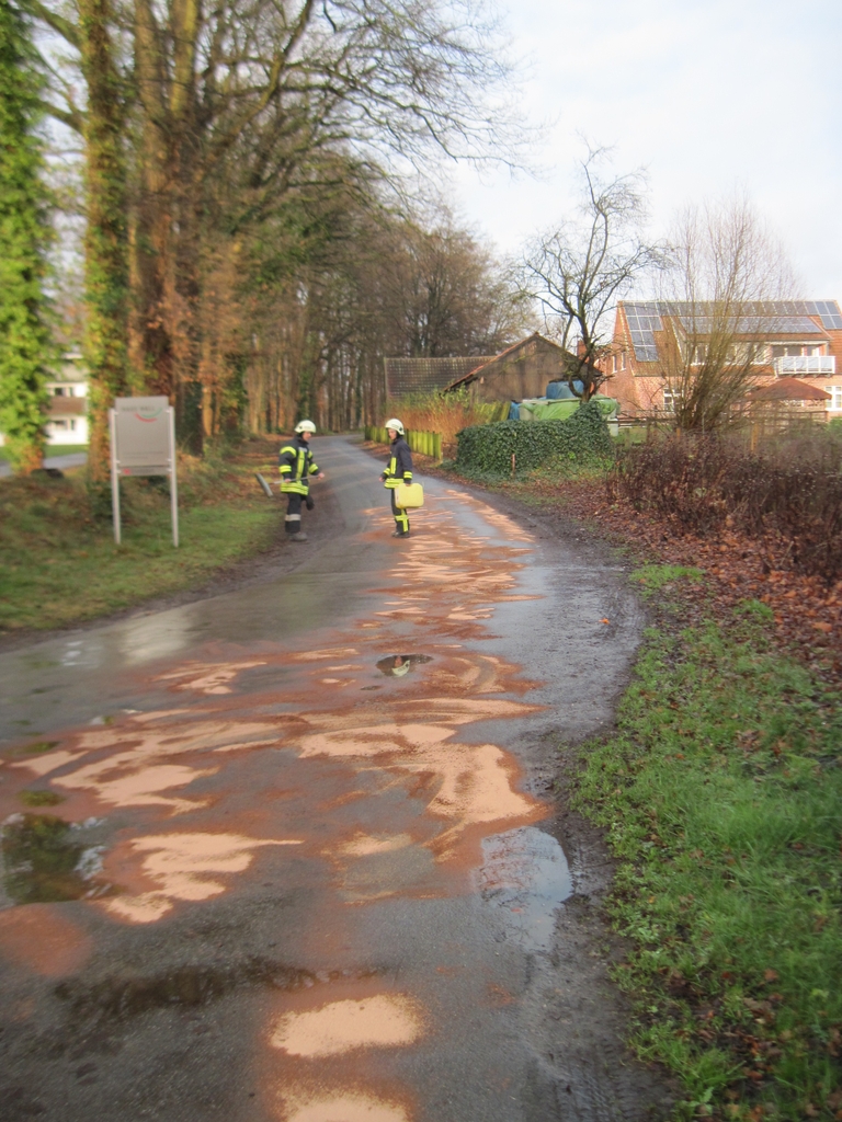 Der Löschzug Gescher ist am Sonntag Nachmittag erneut zu einer Ölspur gerufen worden. Diese fing auf einem Feldweg hinter Haus Hall an und ging bis zur Abfahrt zur alten Coesfelder. Danach verlor sich die Spur. Ein Verursacher konnte nicht festgestellt werden. Die Feuerwehr streute die Spur ab. Nach ca. 1 Stunde war der Einsatz beendet.