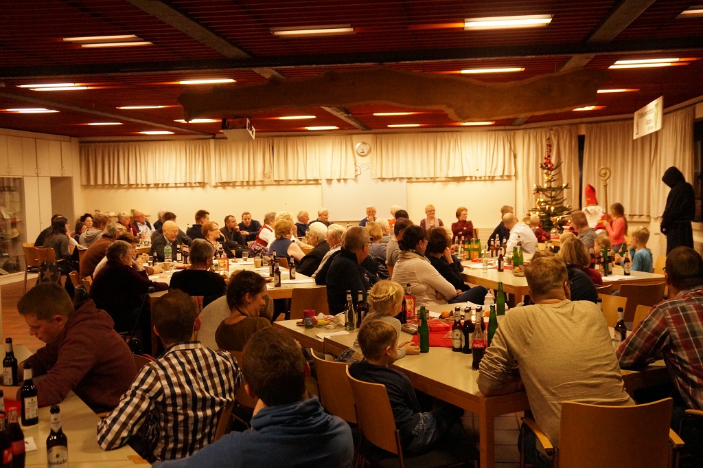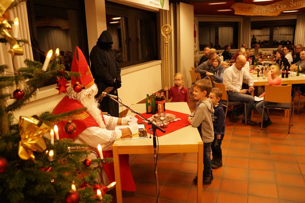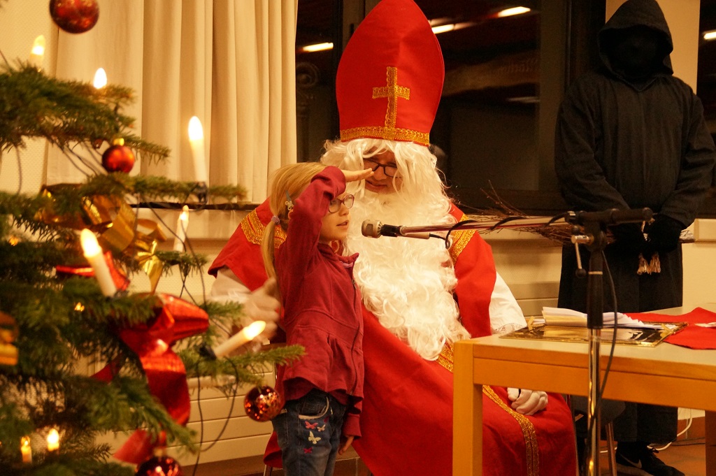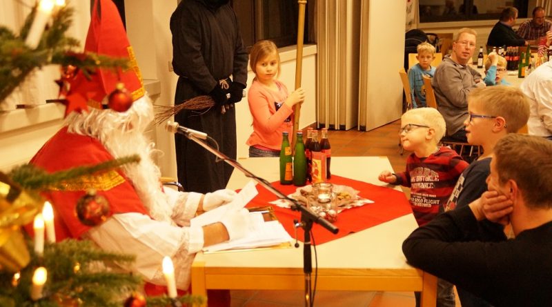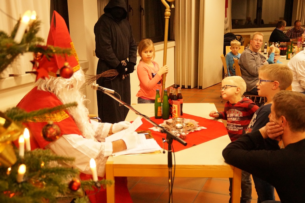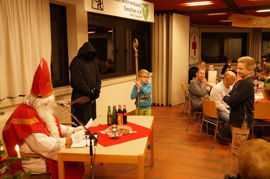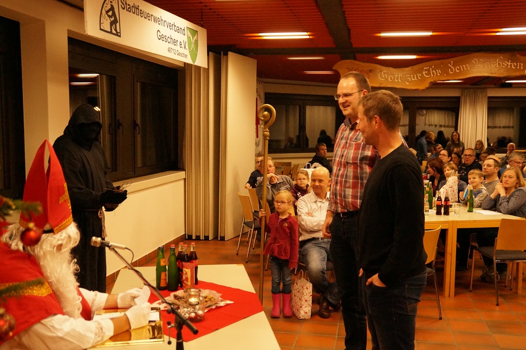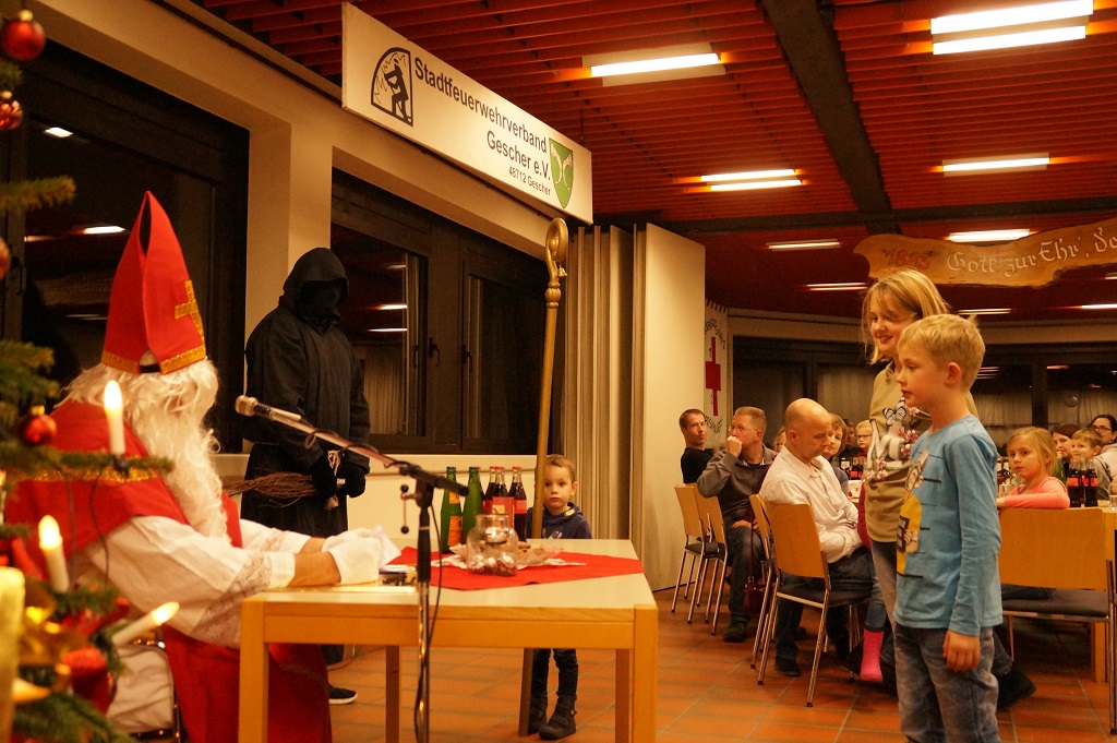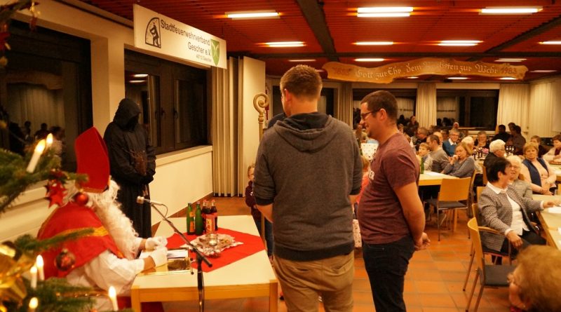 Da der Nikolaus am 06.12. schon stark beschäftigt ist, besuchte der Nikolaus bereits am vergangenen Sonntag die Feuerwehr. Der Nachmittag begann zunächst mit der Weihnachtsfeier der Alters- und Ehrenabteilung. Gegen Abend kamen die Feuerwehrkameraden mit Ihren Familien hinzu. Gemeinsam wurde das Lied „Nikolaus komm in unser Haus“ angestimmt und so musste man nicht mehr lange warten und konnte den Nikolaus und den Ruprecht im Feuerwehrgerätehaus begrüssen. Der Nikolaus hatte sowohl Lob wie auch Tadel für die Kinder der Feuerwehr wie auch für einige aktive Feuerwehrmänner über das ganze Jahr gesammelt und sogar aus der Alters- und Ehrenabteilung hatte er zu berichten. So konnten sich die Kinder der Feuerwehrkameraden nach und nach eine Tüte vom Nikolaus abholen. Nach einem weiteren Weihnachtslied und einem Gedicht musste der Nikolaus auch schon zu seinem nächsten Termin aufbrechen.