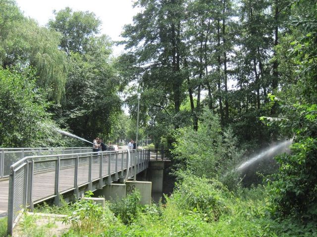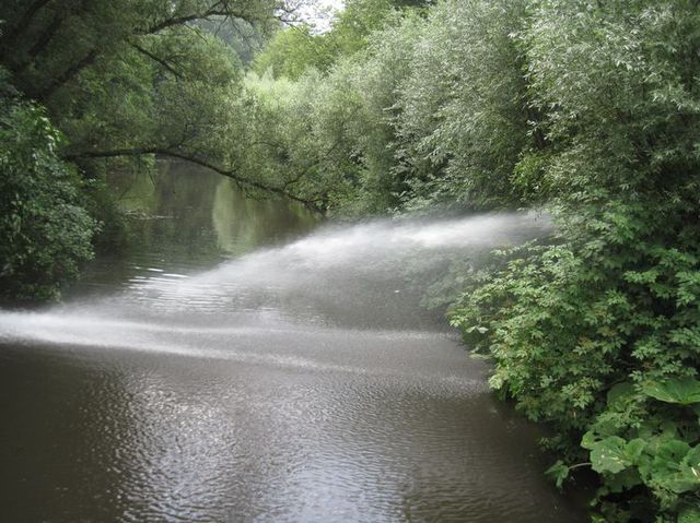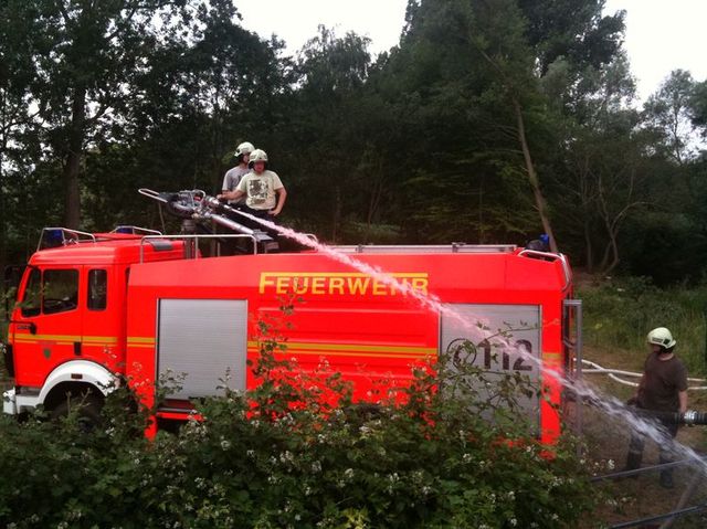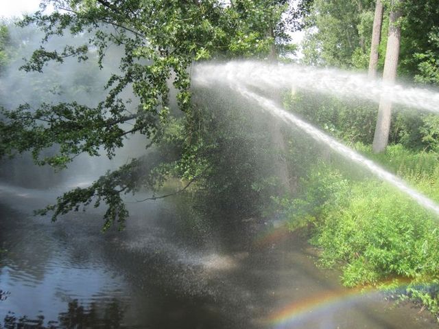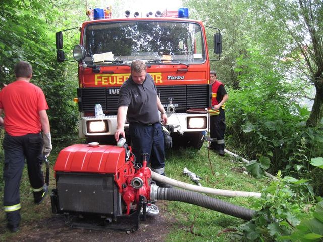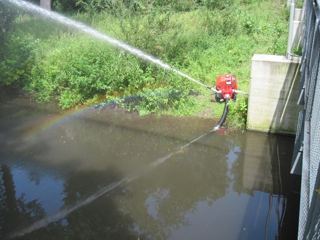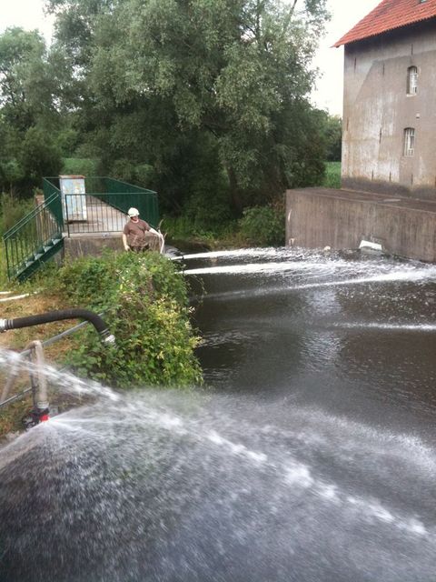 Zahlreiche Fische trieben in dem trüben Wasser mit dem Bauch nach oben; andere große und kleine Fische schnappten an der Wasseroberfläche nach Luft. An mehreren Stellen, u.a. an Alfers Mühle am Mühlengrund sowie an der Hammbrücke brachten die Wehrmänner ihre Geräte in Stellung. Mit Wasserwerfern, Monitoren und Strahlrohren wurde das durch die hochsommerlichen Temperaturen aufgewärmte Wasser umgewälzt. Mit dem Sprühstrahl wollte man erreichen, dass dem Wasser des kleinen Flüsschen Sauerstoff zugeführt würde. Insgesamt waren ein Wassewerfer, ein Dachmonitor, zwei B-Strahlrohre, ein Hydroschild und zwei Schwerschaumrohre (natürlich ohne Schaummittel) im Einsatz. Neben der Freiw. Feuerwehr Gescher war auch das Ordnungsamt sowie die Untere Wasserbehörde vor Ort.