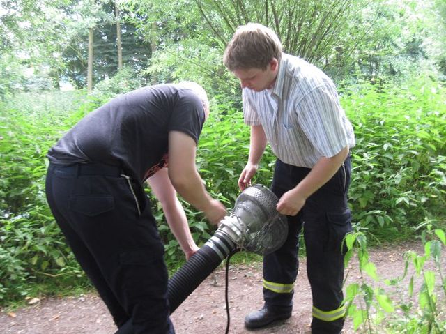 Erneut wurde ein massives Fischsterben am Sonntagmorgen auf der Berkel beobachtet. Dieses rief die Freiwillige Feuerwehr auf den Plan. Durch Umwälzen des Wassers sollte eine Sauerstoffzufuhr erreicht werden.