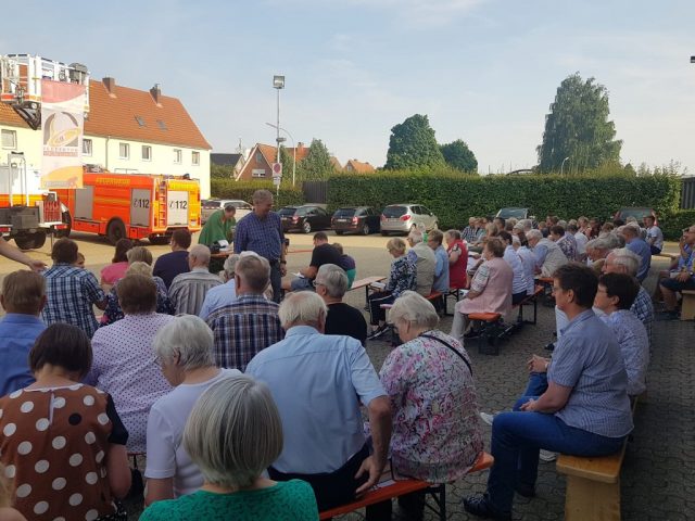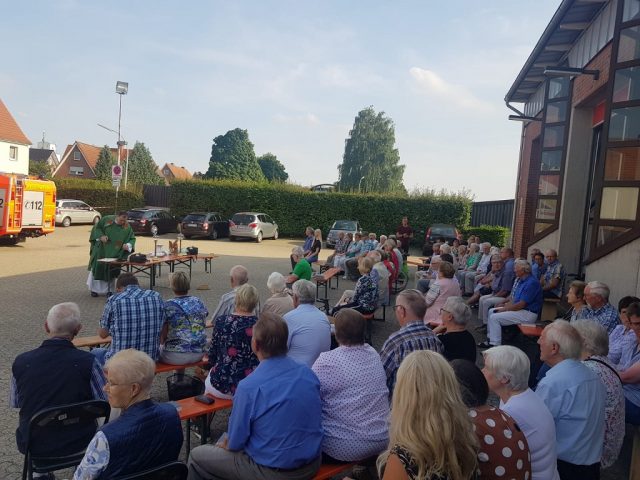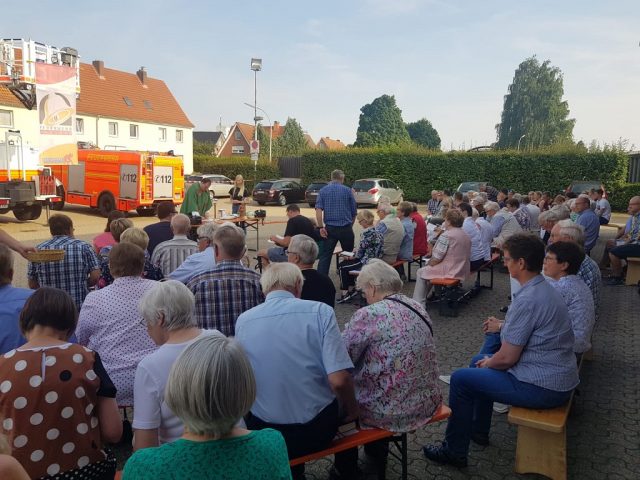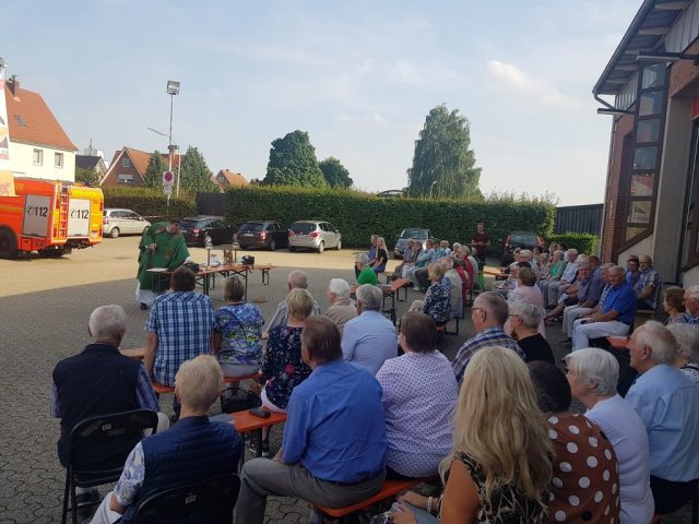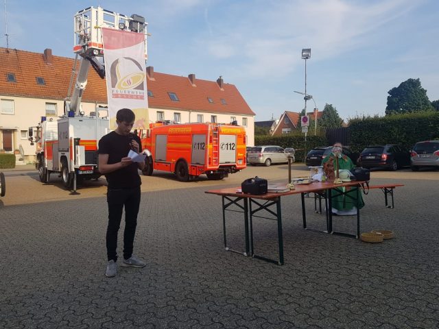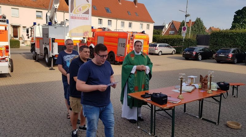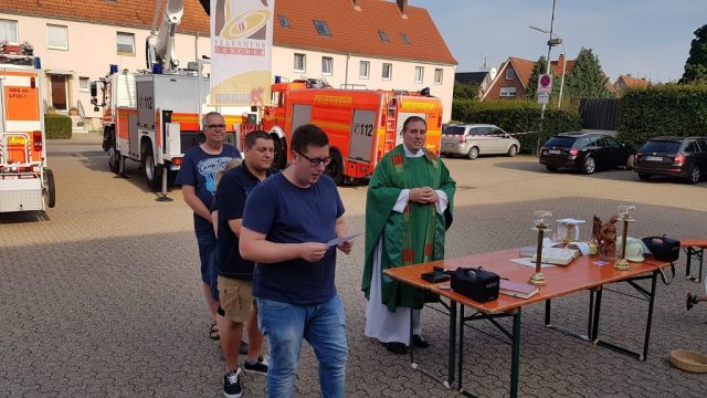 Zu einer Messe Spezial hatte die hiesige Kirchengemeinde am Sonntag geladen. Die Messe fand am Feuerwehrgerätehaus bei tollen Wetter unter freiem Himmel statt und hatte entsprechend auch die Feuerwehr als Thema. So wurden z.B. die speziellen „Feuerwehr“-Fürbitten von Feuerwehrkollegen vorgetragen.