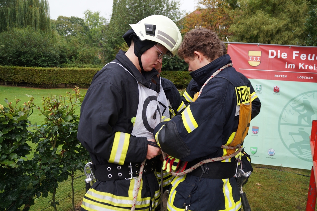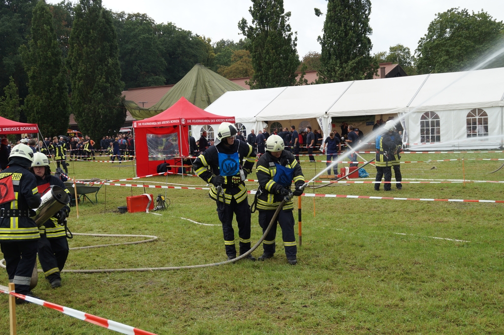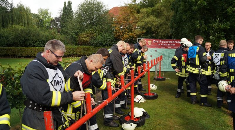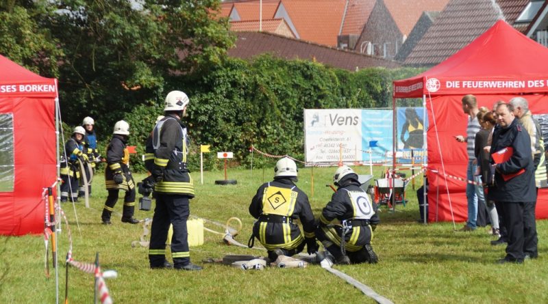 Am vergangenen Wochenende fand der diesjährige Leistungsnachweis der Feuerwehren des Kreises Borken in Velen statt. So waren die Feuerwehrmitglieder bei einem Löschangriff, bei Knoten und Stichen, einem Staffellauf sowie einem Fragebogen gefordert. Die Feuerwehr Gescher war mit 4 Gruppen vertreten (2 Gruppen aus Gescher und 2 Gruppen aus Hochmoor):