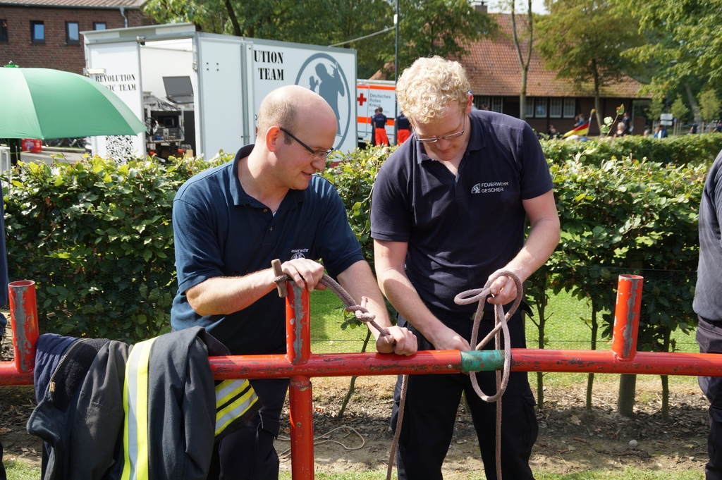 Eine weitere feuerwehrpraktische Station waren die Knoten und Stiche. Hier wurden drei feuerwehrtypische Knoten gefordert.