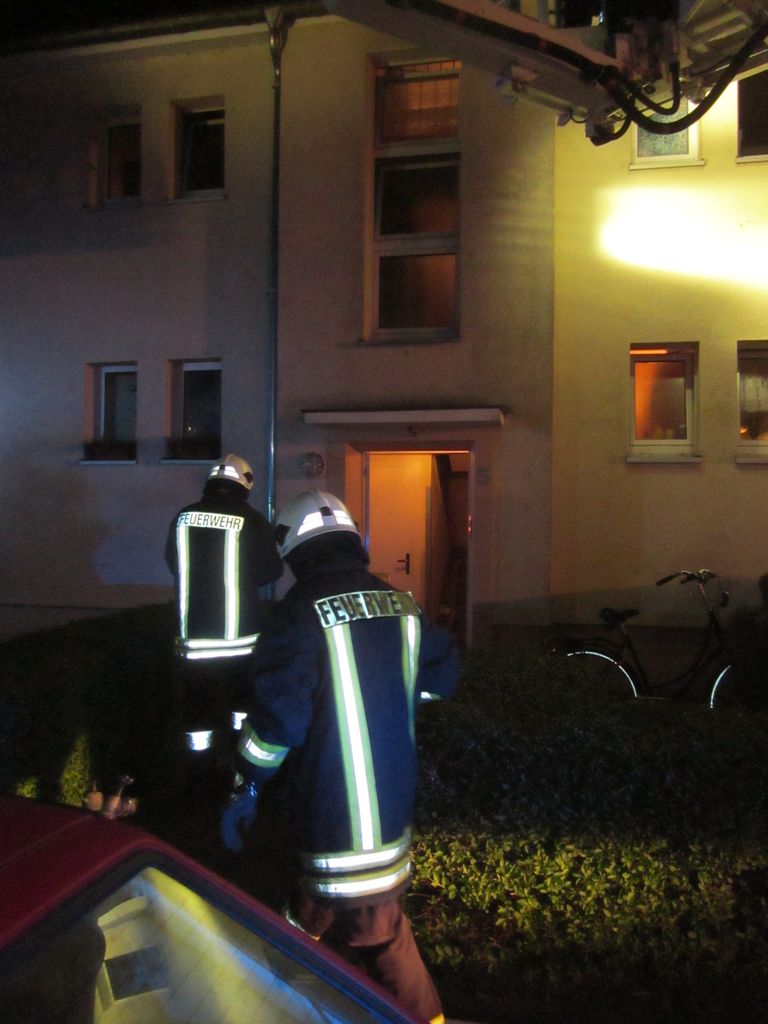 Kurz nach 23:30 Uhr bemerkte ein Anwohner Rauch aus einem Fenster im 1. OG steigen. Er alamrierte die Feuerwehr und versuchte die Bewohner zu warnen. Diese öffnete jedoch nicht die Tür. Somit war nicht klar, ob die Person in Gefahr ist. Aufgrund der Größe des Gebäudes und der Person in Gefahr alarmierte die Leitstelle die Feuerwehr Gescher und Hochmoor per Vollalarm. Die ersten Kräfte vor Ort erkundeten die Lage und entschieden sich aufgrund der unklaren Lage einen Rettungs- und Löschangriff sowohl durch das Treppenhaus wie auch durch das offene Fenster auf der Rückseite. In dem Moment, wo der Angriffstrupp im Treppenhaus gerade die Tür gewaltsam öffnen wollte öffnete der Bewohner doch die Tür. Er wurde sofort dem Rettungsdienst übergeben und dann mit dem Rettungswagen vorsorglich ins Krankenhaus Stadtlohn gebracht. Die starke Verrauchung der Wohnung wurde durch eine auf dem Herd stehende Pfanne ausgelöst, die sofort mit einem Trupp unter Atemschutz ins Freie gebracht wurde. Somit waren keine weiteren Löschmassnahmen nötig.Der Bewohner war anscheinend eingeschlafen und bemerkte somit die Verrauchung nicht sofort. Dabei hatter er auch Glück, dass er das Fenster in der Küche geöffnet hatte, so dass ein Großteil des Rauches abziehen konnte.