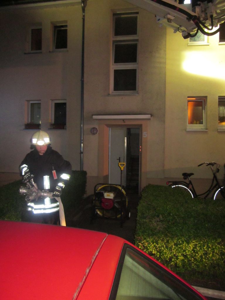 Das Treppenhaus sowie die Wohnung wurden dann noch mit dem Hochleistungslüfter belüftet. Anschließend konnten die übrigen Bewohner wieder in Ihre Wohnungen zurück.