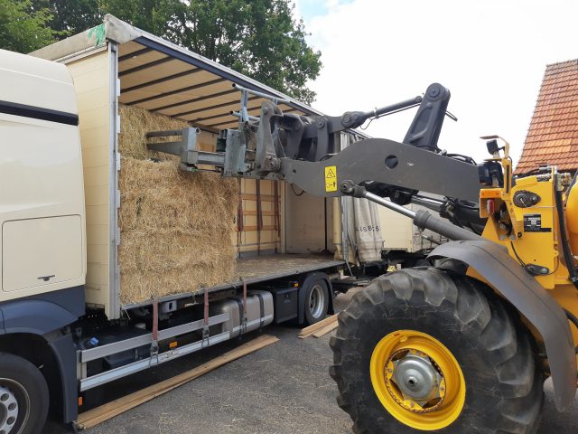 Die Firma Twents Objekteinrichtungen aus Gescher übernahm neben der Spende von eigenen Heuballen auch den Transport nach Eschweiler.
