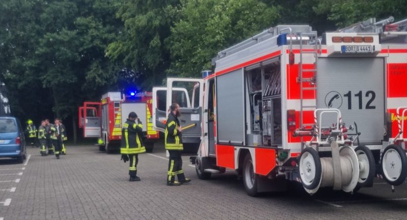 Gegen 11:50 Uhr wurde die Feuerwehr Gescher per ausgelösten Brandmeldeanlage zu einem Betrieb auf der Ruthmannstraße im Ortsteil Hochmoor gerufen. Dort hatte ein Kabelbrand die Brandmeldeanlage ausgelöst. Das Gebäude war bei Eintreffen noch verraucht und das Gerät bereits stromlos geschaltet. Der Bereich wurde unter Atemschutz erkundet und anschließend mittels Überdrucklüfter entraucht. Das Elektrogerät, die Anschlüße und die Umgebung wurden mittels Wärmebildkamera kontrolliert und das Elektrogerät ins Freie verbracht.