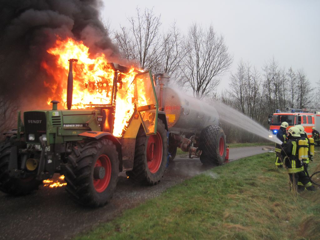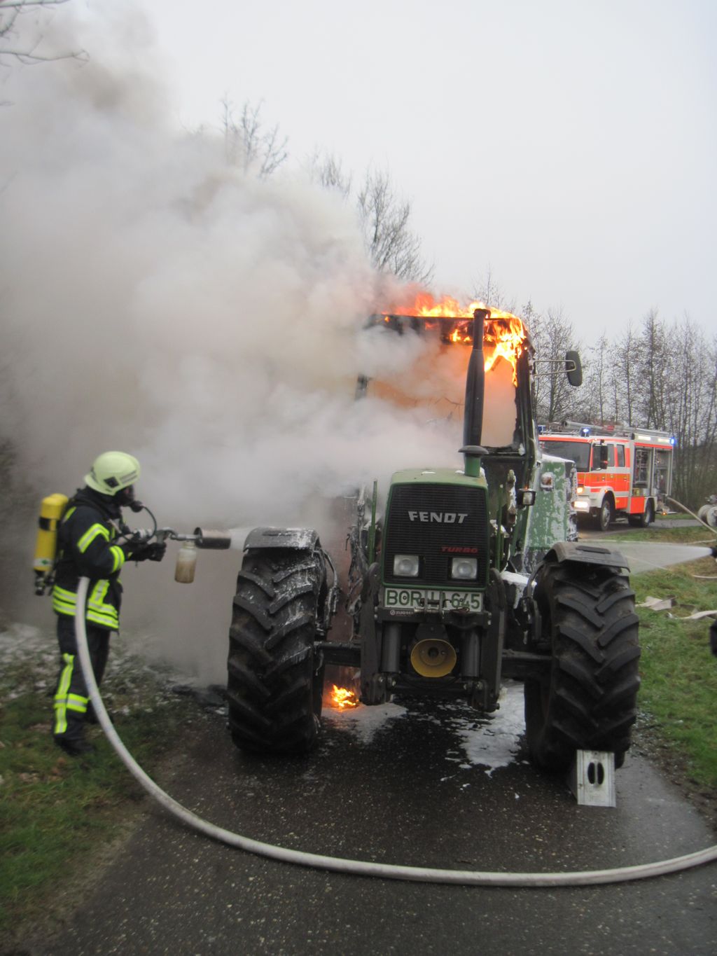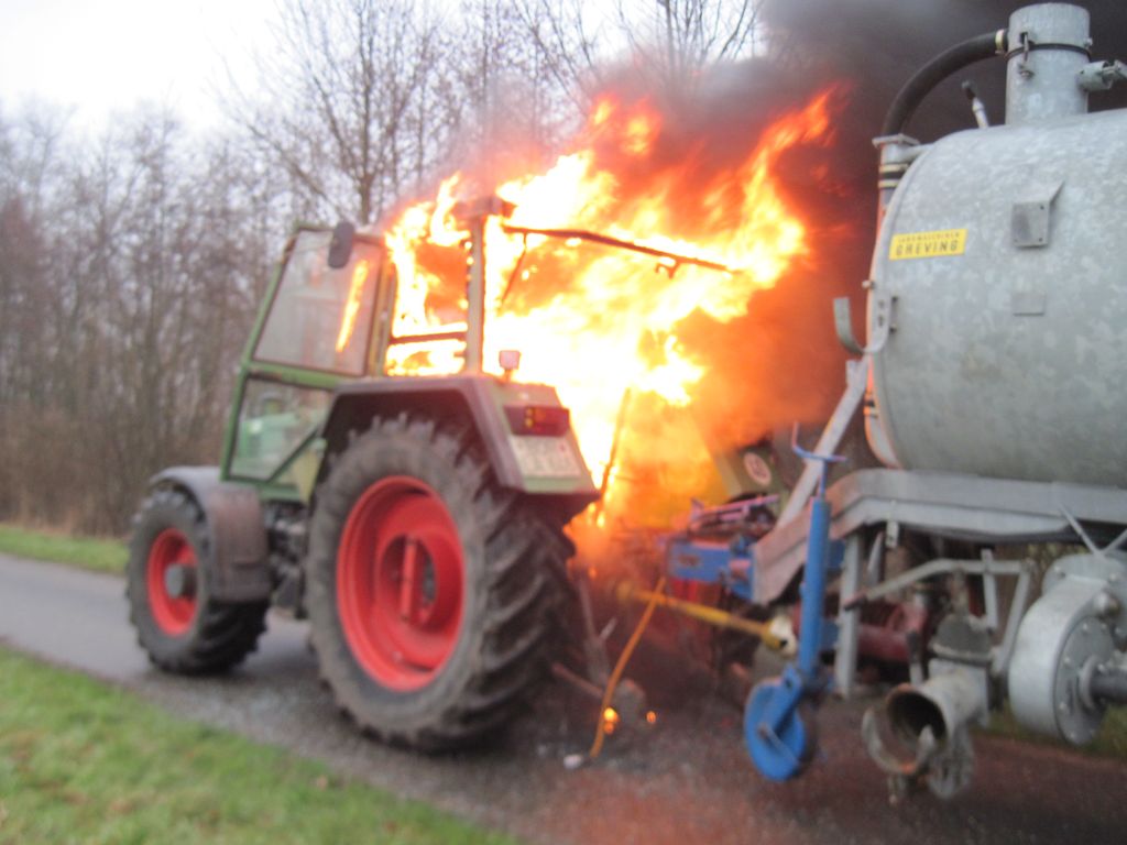 Gegen 16:30 Uhr ist die Feuerwehr Gescher zu einem Fahrzeugbrand auf einen Feldweg in Tungerloh-Capellen gerufen worden. Dabei handelte es sich um einen Traktor. Beim Eintreffen brannte bereits die Kabine in voller Ausdehnung. Die Feuerwehr konzentrierte sich zunächst darauf ein Übergreifen der Flammen auf den Anhänger zu verhindern, um dann in einem zweiten Schritt den Traktor mit Schaum zu löschen. Das Feuer ist wahrscheinlich durch einen technischen Defekt ausgebrochen. Nach dem Löschen begleitete die Feuerwehr noch die Bergung des Traktors.