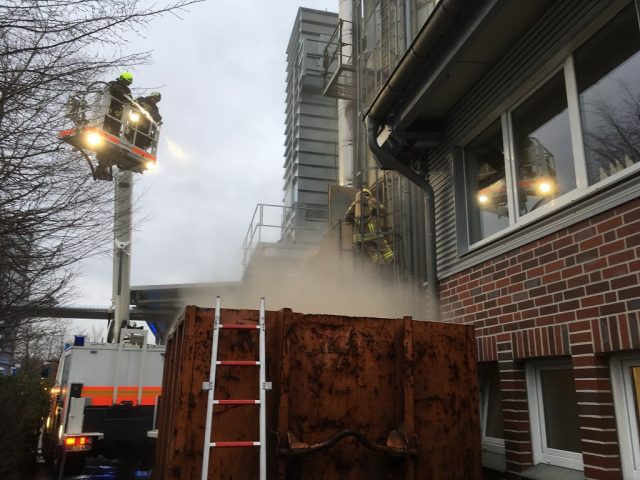 Eine erste Überprüfung des Spänebunkers durch die Kontrollluken ergab jedoch keine erhöhte Temperatur. Da der Spänebunker etwa zur Hälfte gefüllt war, konnte die Temperatur aber nur oberflächlich kontrolliert werden.