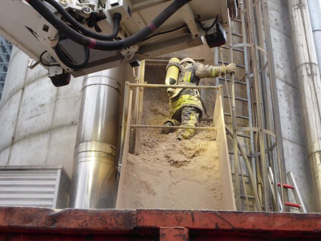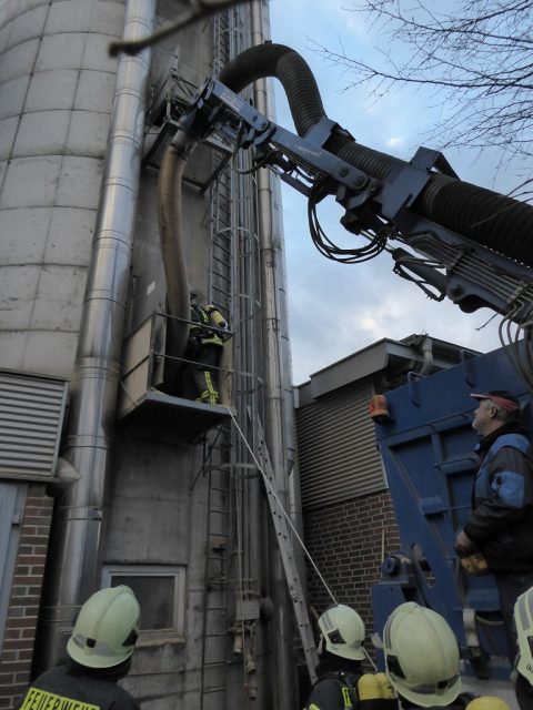 Dazu wurde das Saugrohr weiterhin unter Atemschutz im Silo gesteuert.