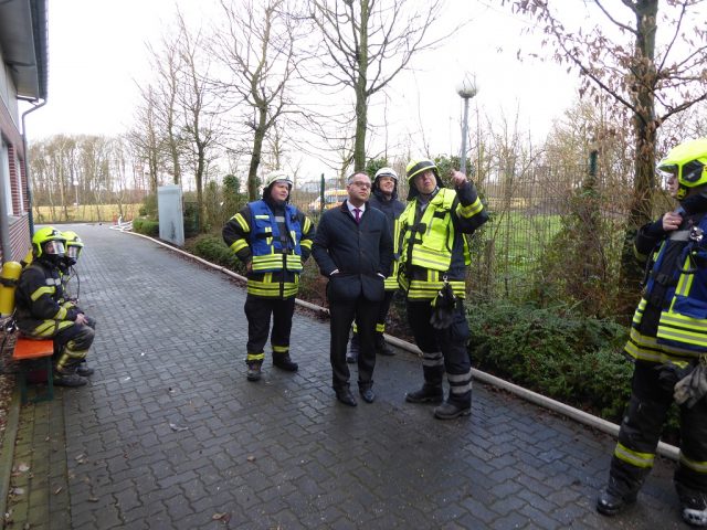 Der Kreisbrandmeister Johannes Thesing wie auch der Bürgermeister Thomas Kerkhoff machten sich vor Ort ein Bild der Lage.