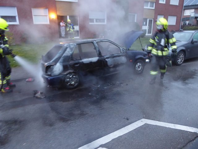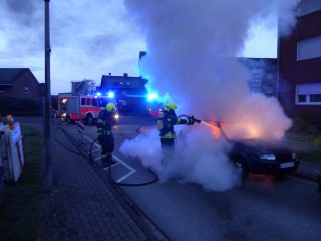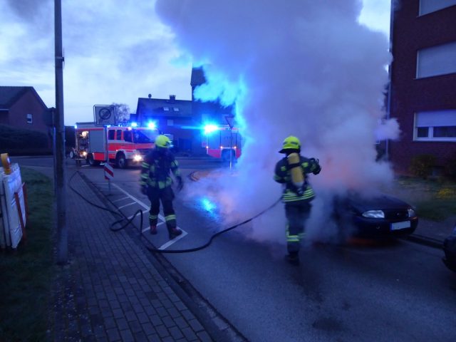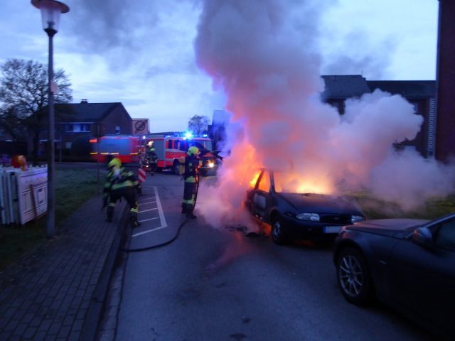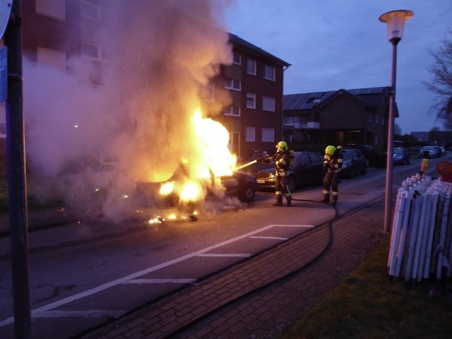 Gegen 6:30 Uhr wurde die Feuerwehr zu einem Fahrzeugbrand auf der Twente gerufen. Beim Eintreffen der Feuerwehr stand das Fahrzeug in Vollbrand. Die Feuerwehr löschte unter Atemschutz das Fahrzeug zunächst mit Wasser. Dazu wurde auch die Brandausbreitugn auf ein benachbartes Fahrzeug verhindert. Abschließend wurde das Fahrzeug mit Schaum abgedeckt. Die Ursache des Fahrzeugbrandes war zunächst ungeklärt. Die Kriminalpolizei ermittelt.