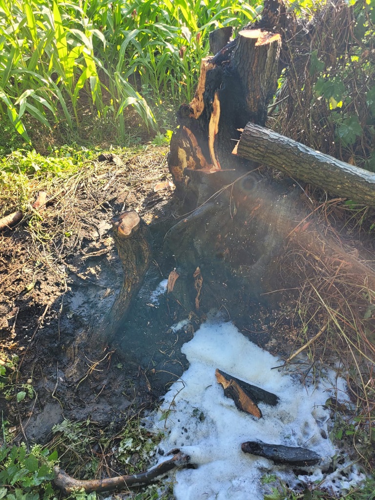 Ein hohler Baum brannte bei Eintreffen im Stammbereich am Rand eines Wirtschaftsweges. Der Baum wurde zunächst äußerlich mit Wasser abgelöscht. Anschließend wurde der Baumstumpf mittels Motorsäge aufgeschnitten, um eine Angriffsöffnung zu schaffen und anschließend mit einem Schaumteppich abgedeckt, um ein Wiederaufflammen zu verhindern. der restliche Baum musste aufgrund der Instabilität gefällt werden.
