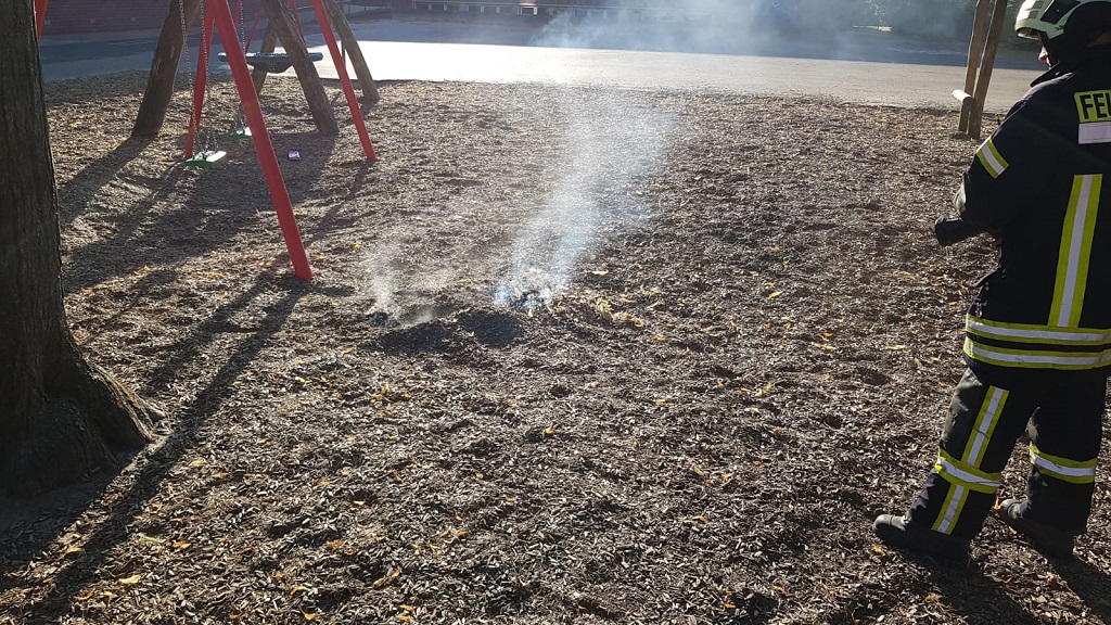 Die Feuerwehr wurde am Sonntagmorgen gegen 7:37 Uhr alarmiert. Ein aufmerksamer Bürger hatte eine Rauchentwicklung auf dem Gelände der von Galen Schule bemerkt. Dort qualmte auf dem Kinderspielplatz ein mit Rindenmulch abgedeckter Bereich. Die Feuerwehr löschte den Rindenmulch ab. Obwohl die Ursache nicht bekannt war, weist die Feuerwehr noch einmal aufgrudn der anhaltenden Trockenheit auf den achtsamen Umgang mit offenen Feuer wie z.B. Zigarettenresten hin.