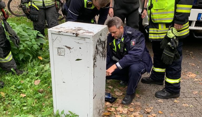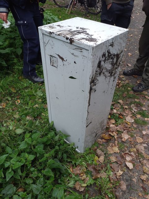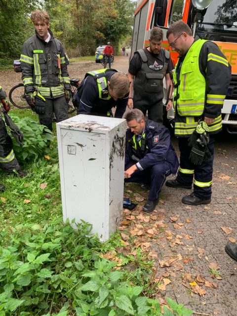 Gegen 16:15 Uhr wurde die Feuerwehr Gescher zu einer Tresorbergung an der Berkelbrücke „Auf dem Brink“ gerufen. Dort befand sich ein Tresor in der Berkel. Die Feuerwehr schaffte den Tresor an das Ufer und übergab diesen der Polizei. Diese ermittelt nun die Herkunft des Tresors.