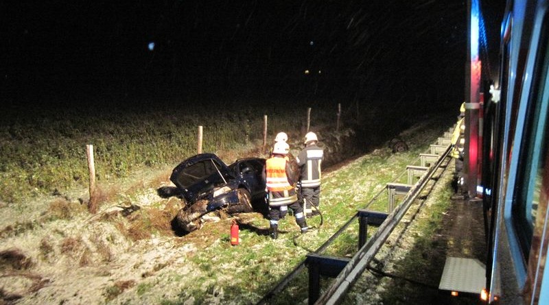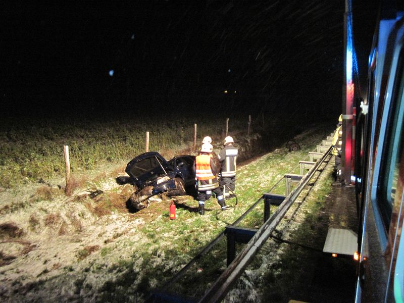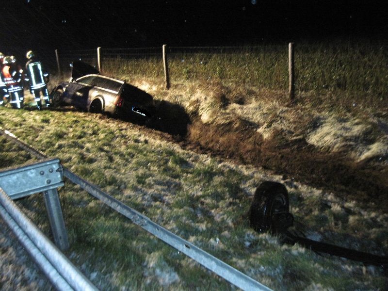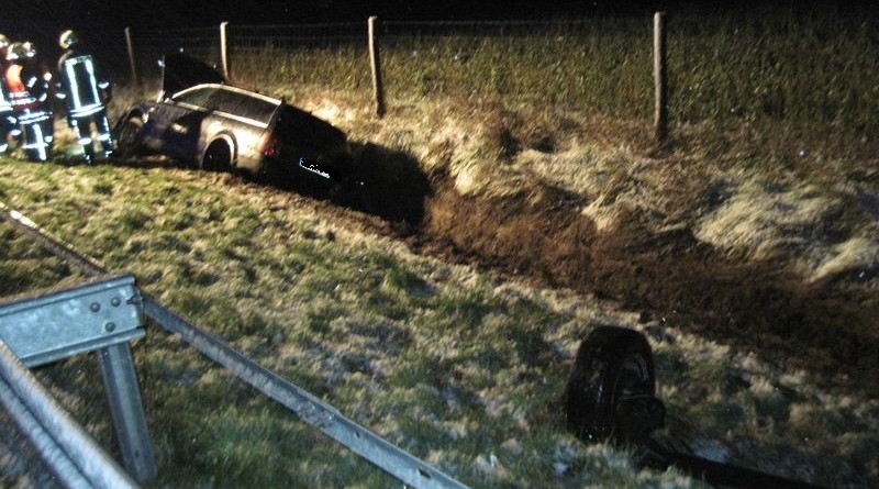 In den frühen Abendstunden wurden die Kameraden der Freiwilligen Feuerwehr am Dienstag zu einem Verkehrsunfall auf die A31 gerufen. Dort ist ein PKW aus bislang ungeklärter Ursache nach rechts von der Fahrbahn abgekommen und in den Graben gefahren. Dabei riss er sich die Hinterachse vom Fahrzeug ab. Entgegen der ersten Meldung das eine Person eingeklemmt ist, konnte der Fahrer sich selbstständig aus seinem Fahrzeug befreien und wurde vom Rettungsdienst untersucht. Die Feuerwehr leuchtete die Unfallstelle aus, kontrollierte den Fahrzeugtank und die Batterie.