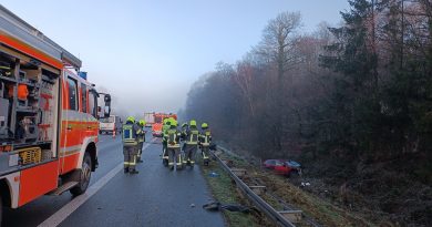 Gegen 17:57 Uhr wurde die Feuerwehr Gescher zu einer Absicherung des Rettungsdiesntes und der Einsatzstelle nach einem Verkehrsunfall auf die A31 gerufen. Dort hatte ein PKW-Fahrer aus Heiden ein Alleinunfall. Der Fahrer blieb unverletzt und sein Fahrzeug blieb nach dem Ufnall größtenteils auf dem Standstreifen stehen. Ein kleiner Teil ragte auf die rechte Fahrbahn. Zudem befanden sich noch Trümmerteile auf der rechten Spur. Die Feuerwehr sperrte zunächst kurzzeitig die Fahrbahnen um die Trümmerteile zu entfernen und Splitter von der Straße zu fegen. Anschließend sicherte sie die Unfallstelle auf dem Standstreifen bis zum Eintreffen der Polizei ab.
