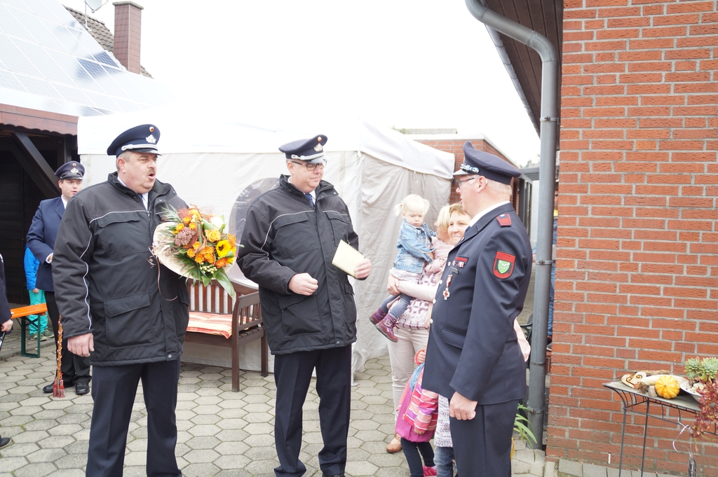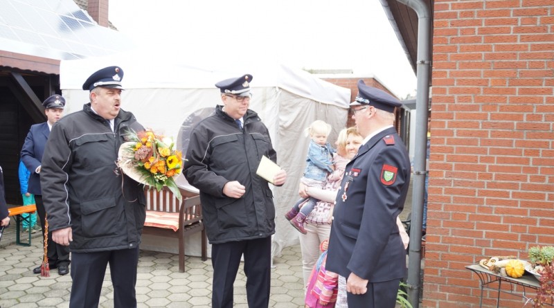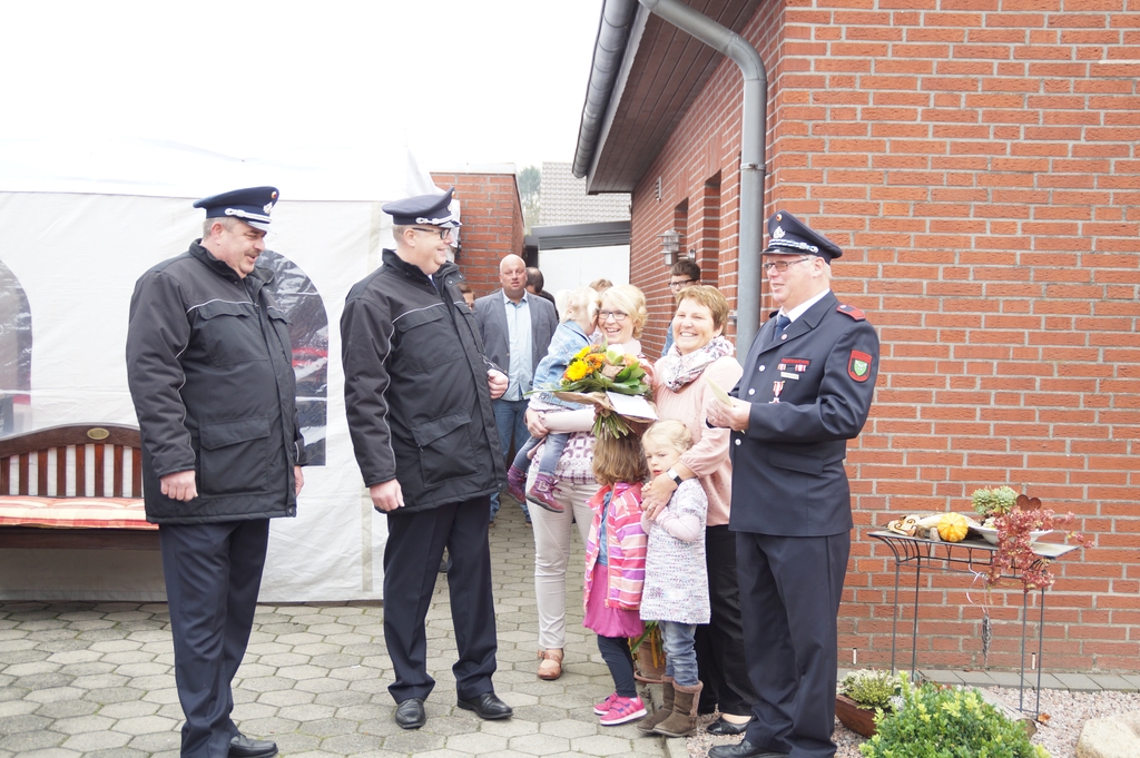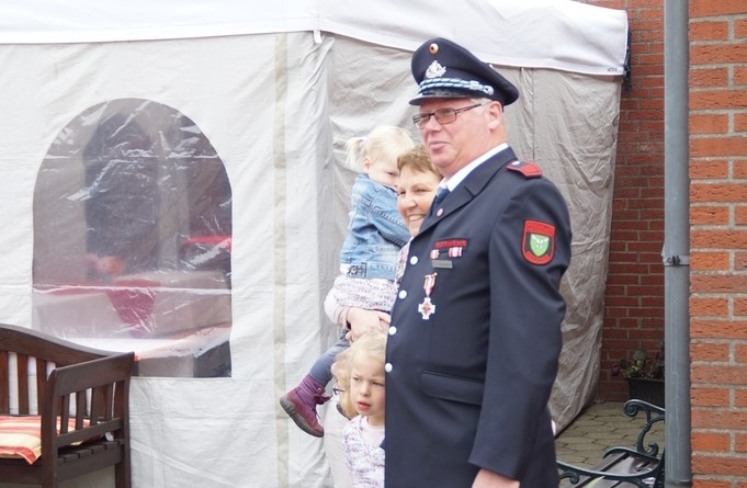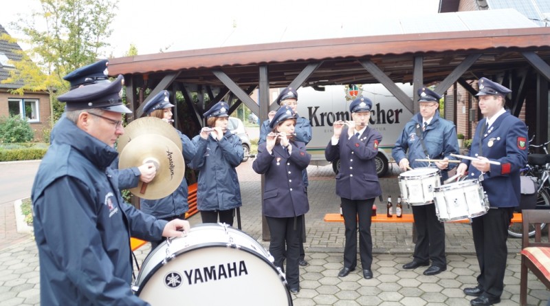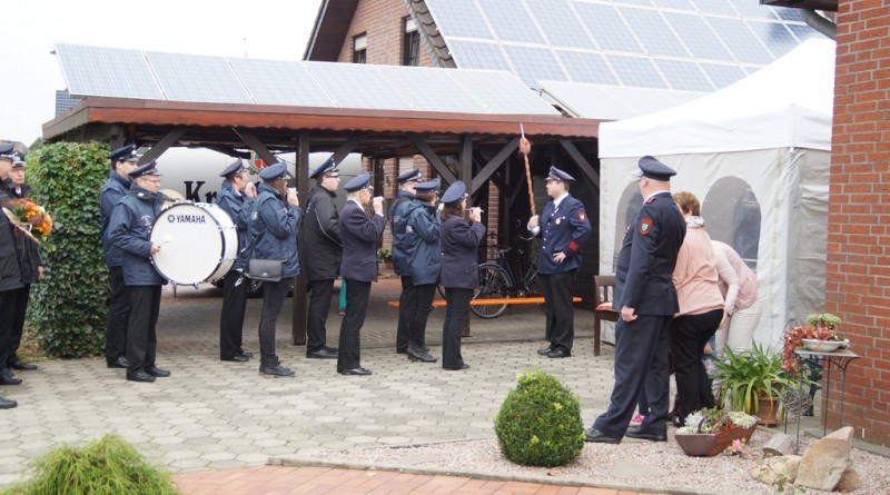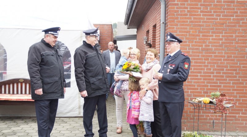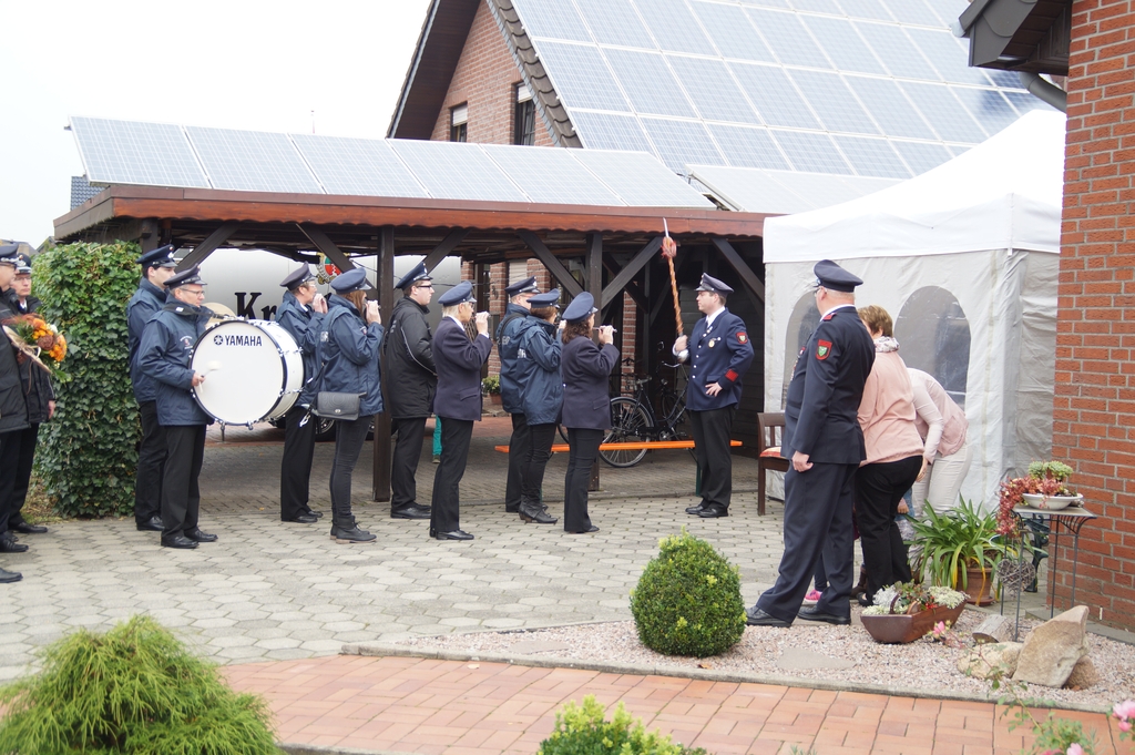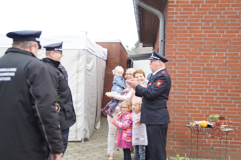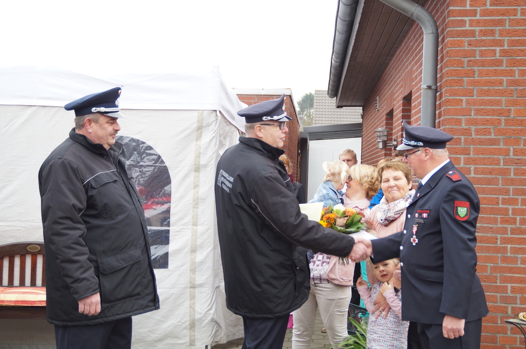 Nachdem Franz-Josef Schulenkrof bereits auf der Jahreshauptversammlung in der vergangenen Woche offiziell aus der Einsatzabteilung in die Alters- und Ehrenabteilung gewechselt ist stand jetzt nach seinem 60. Geburtstag ein weiteres Highlight an. Die Kameraden der Feurwehr mit der Alters- und Ehrenabteilung und des Spielmanszuges liesen es sich nehmen und gratulierten mit einem Ständchen. Mit Marschmusik zog die Feuerwehr vor dem Haus Schulenkorfs auf. Zu den ersten Gratulanten gehörte Stadtbrandinspektor Christian Nolte. Mit einem Blumenstrauß bedankte er sich zugleich bei der Frau irmgard dafür, dass Sie auf Ihren Mann so oft für die Feuerwehr verzichten musste. Mit einem weinenden Auge hat man einen aktiven Kameraden der jahrelang für die Pressearbeit bei der Feuerwehr zuständig war aus der Einsatzabteilung verloren. Gleichzeitig freue sich jedoch jetzt die Alters- und Ehrenabteilung auf „jungen“ Nachwuchs. Auch werde die Archivarbeit weiter durch Franz-Josef gemacht werden. Mit verschiedenen Musikstücken wurde dann gefeiert, bei denen auch Franz-Josef Schulenkorf den Taktstock schwingen durfte.