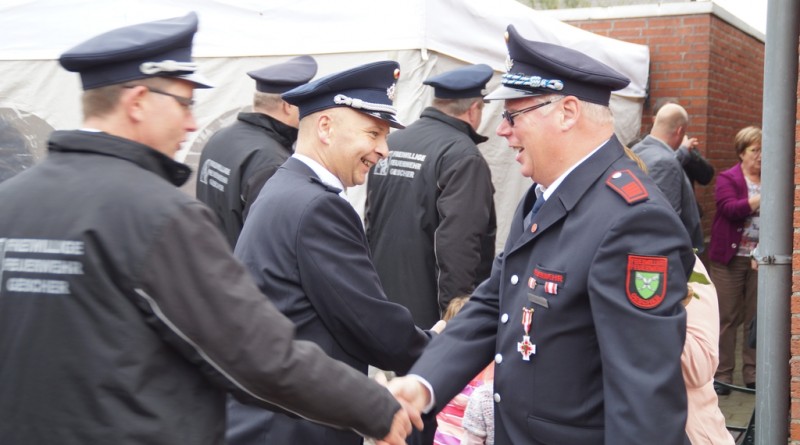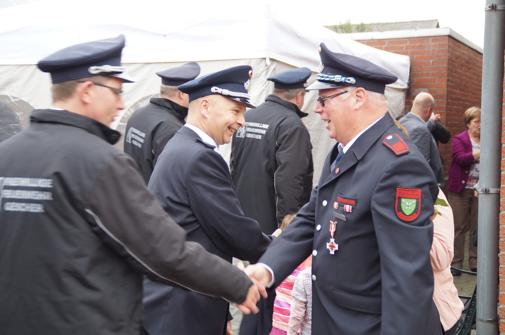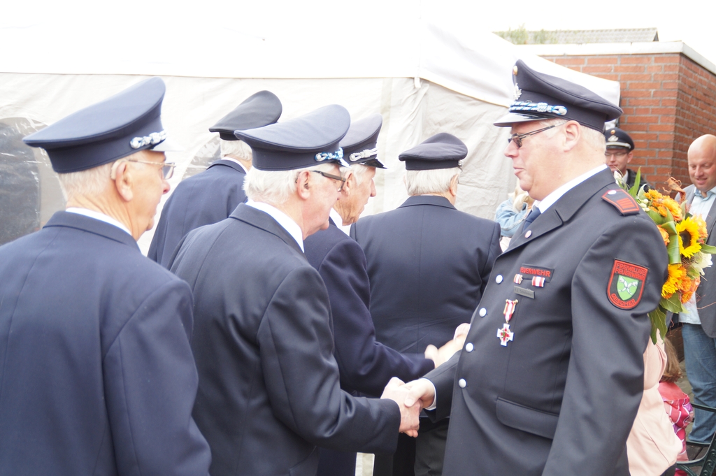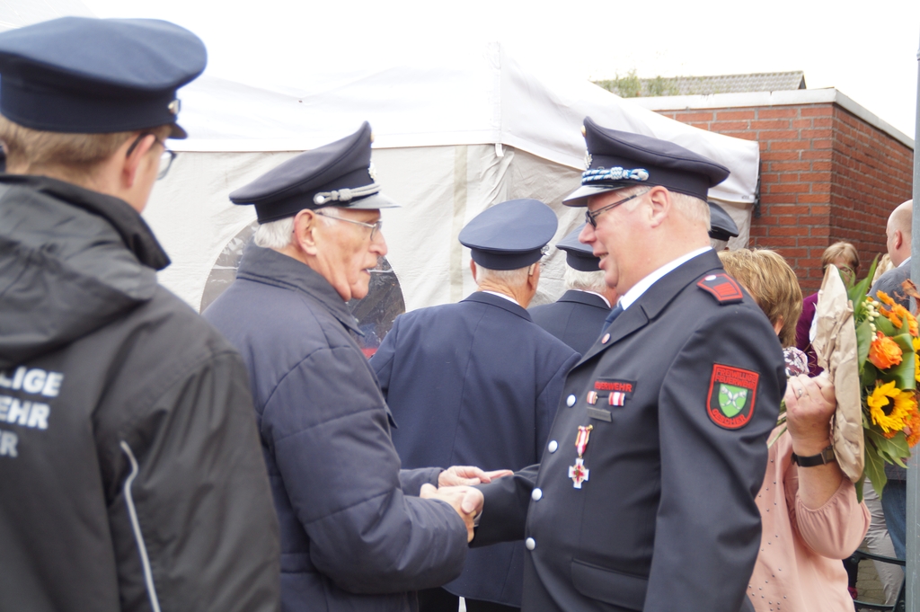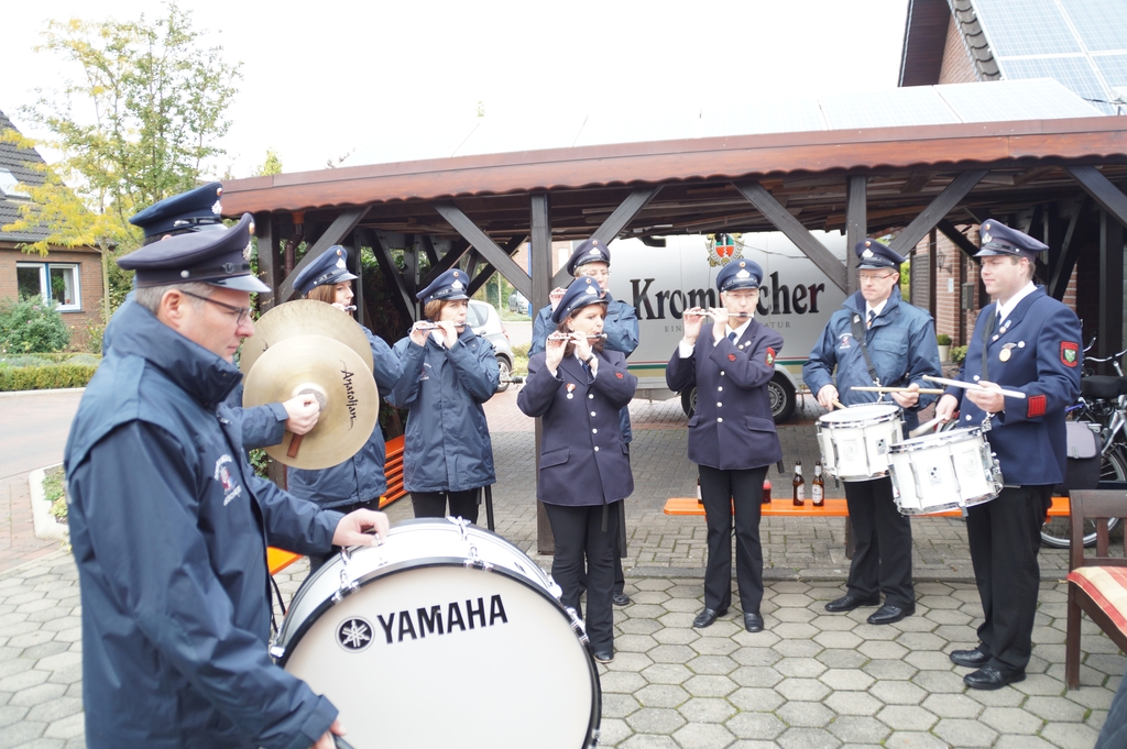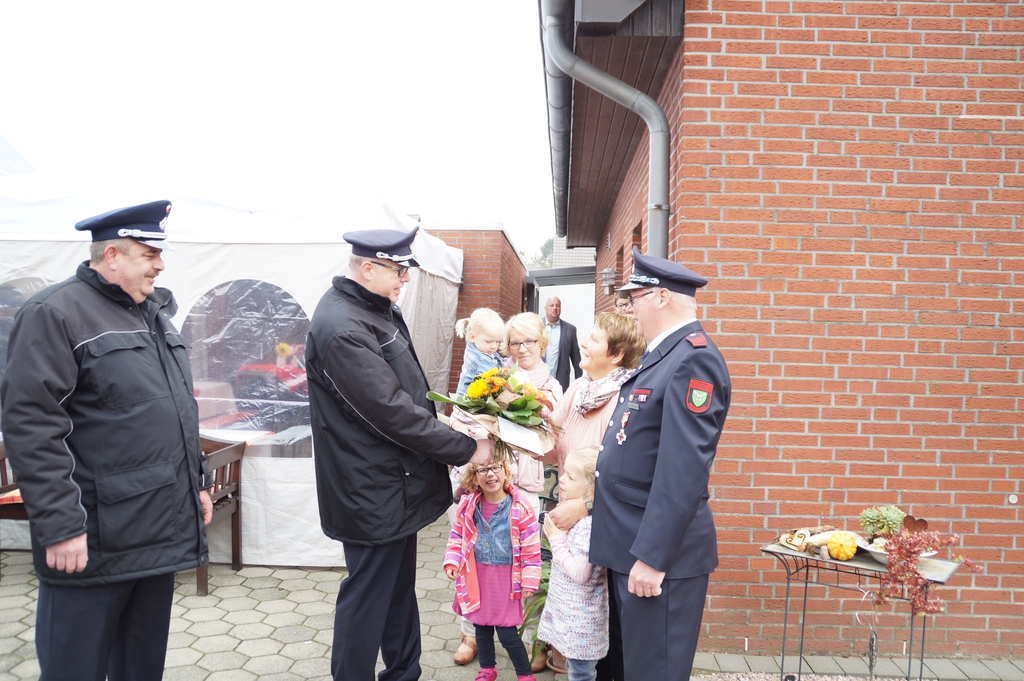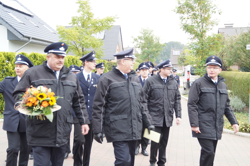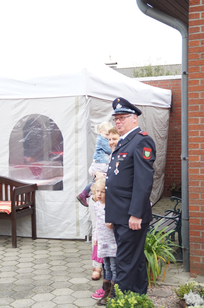 Nachdem Franz-Josef Schulenkrof bereits auf der Jahreshauptversammlung in der vergangenen Woche offiziell aus der Einsatzabteilung in die Alters- und Ehrenabteilung gewechselt ist stand jetzt nach seinem 60. Geburtstag ein weiteres Highlight an. Die Kameraden der Feurwehr mit der Alters- und Ehrenabteilung und des Spielmanszuges liesen es sich nehmen und gratulierten mit einem Ständchen. Mit Marschmusik zog die Feuerwehr vor dem Haus Schulenkorfs auf. Zu den ersten Gratulanten gehörte Stadtbrandinspektor Christian Nolte. Mit einem Blumenstrauß bedankte er sich zugleich bei der Frau irmgard dafür, dass Sie auf Ihren Mann so oft für die Feuerwehr verzichten musste. Mit einem weinenden Auge hat man einen aktiven Kameraden der jahrelang für die Pressearbeit bei der Feuerwehr zuständig war aus der Einsatzabteilung verloren. Gleichzeitig freue sich jedoch jetzt die Alters- und Ehrenabteilung auf „jungen“ Nachwuchs. Auch werde die Archivarbeit weiter durch Franz-Josef gemacht werden. Mit verschiedenen Musikstücken wurde dann gefeiert, bei denen auch Franz-Josef Schulenkorf den Taktstock schwingen durfte.