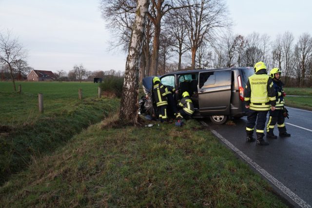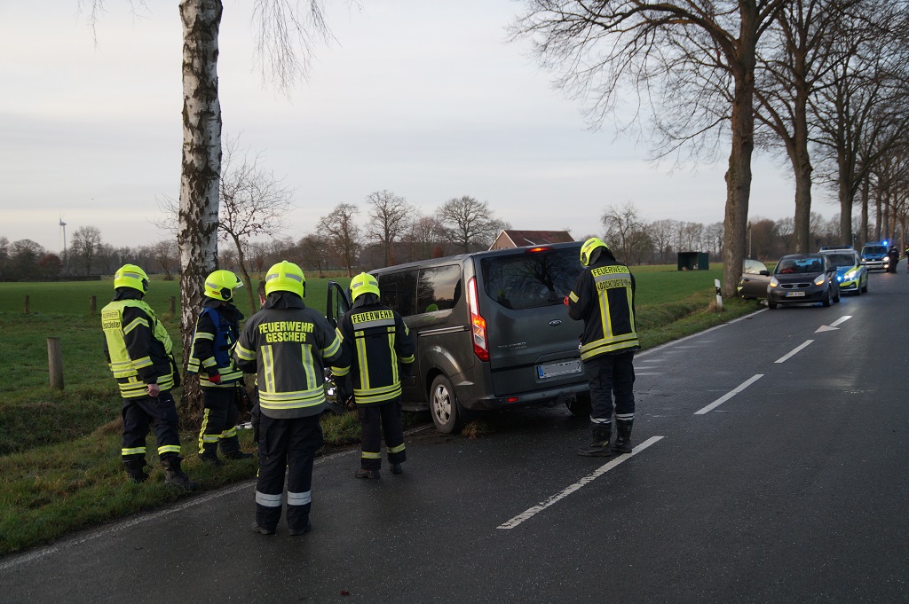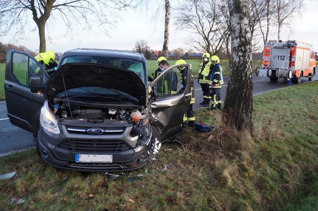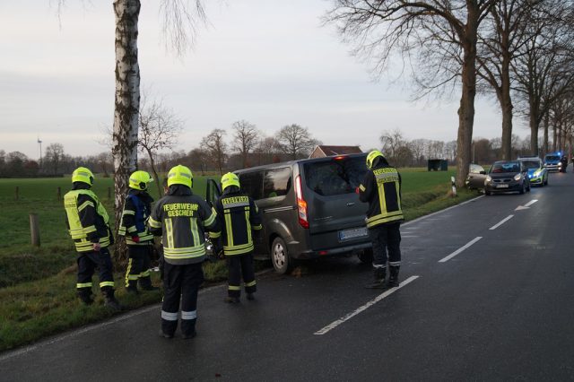 Gegen 8:30 Uhr wurde die Feuerwehr zu einem Verkehrsunfall mit einer vermeintlich eingeklemmten Person auf der Alten Coesfelder Straße gerufen. Eine PKW Fahrerin war ausgangs einer Linkskurve zunächst nach rechts auf den Grünstreifen geraten. Beim Gegenlenken stieß sie dann auf der linken Fahrbahn mit der Fahrerseite seitlich gegen eine Baum. Beim Eintreffen der Feuerwehr war die Frau bereits aus dem Fahrzeug befreit und im Rettungswagen. Sie wurde zur weiteren Untersuchung durch den Rettungsdienst ins Krankenhaus gebracht. Die Feuerwehr klemmte die Batterien ab, um eine eventuelle Brandgefahr zu beseitigen. Anschließend konnte die Einsatzstelle an die Polizei übergeben werden.