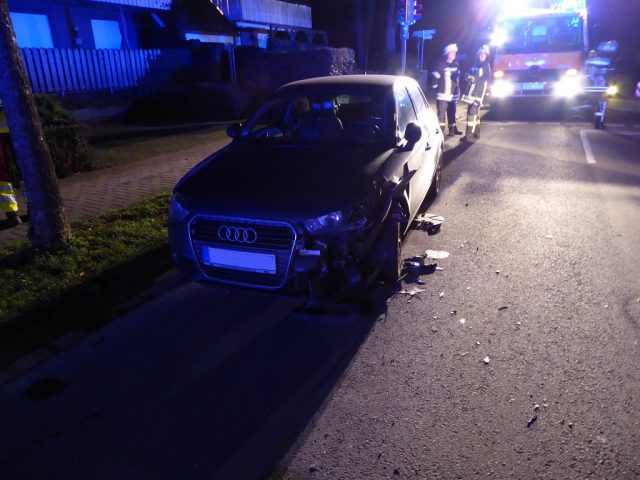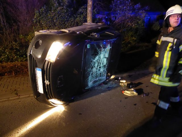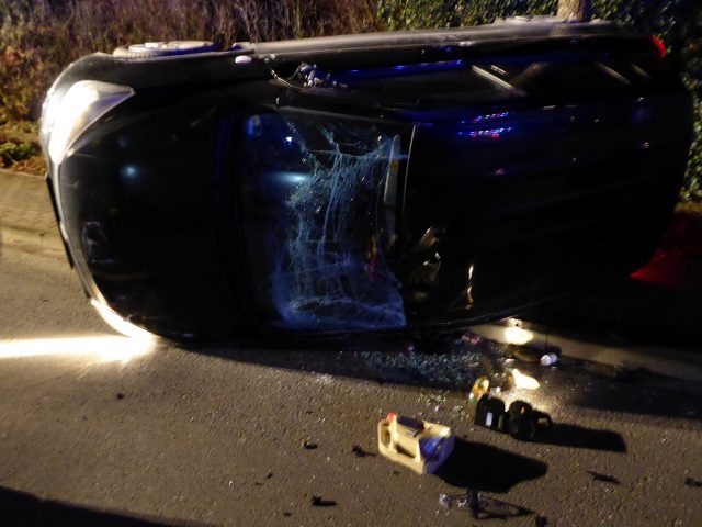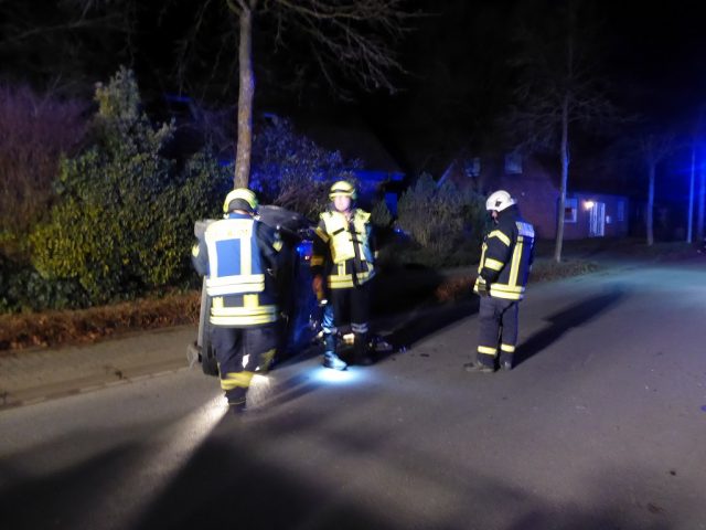 Gegen 19:05 Uhr wurde die Feuerwehr Gescher zu einem Verkehrsunfall auf den Grenzlandring gerufen. Dort ist ein PKW-Fahrer auf ein stehendes Fahrzeug gefahren. Dabei kippte der PKW auf die Seite und blieb auf dem Gehweg liegen.