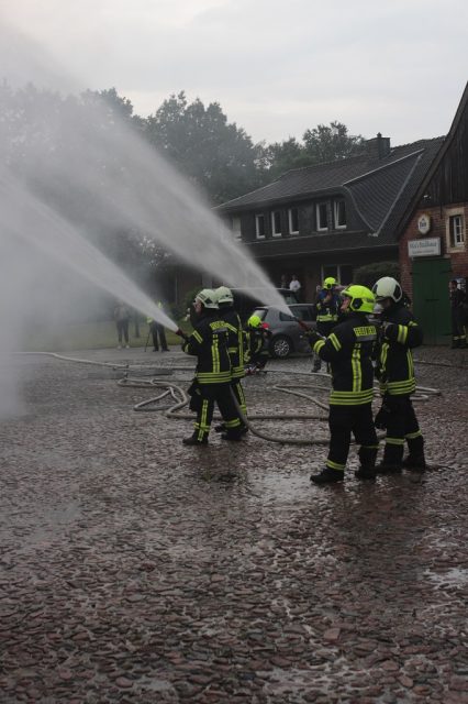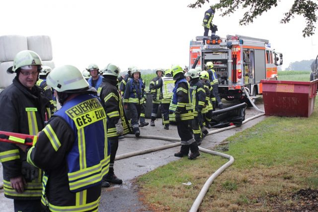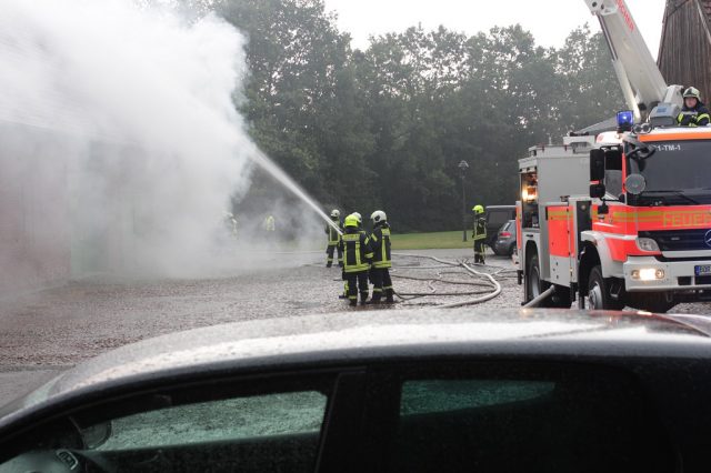 Am vergangenen Donnerstag führte die Feuerwehr Gescher zusammen mit dem Löschzug Holtwick eine Übung in Büren bei Mias Backhaus mit insgesamt 77 Einsatzkräften durch.