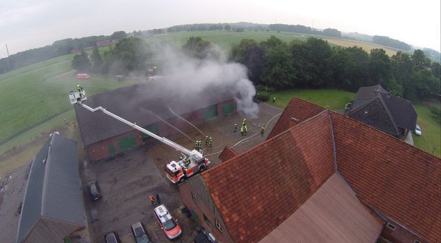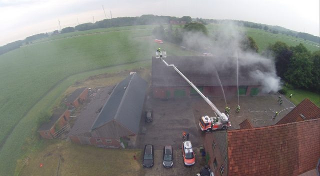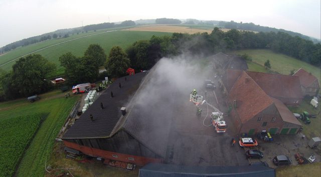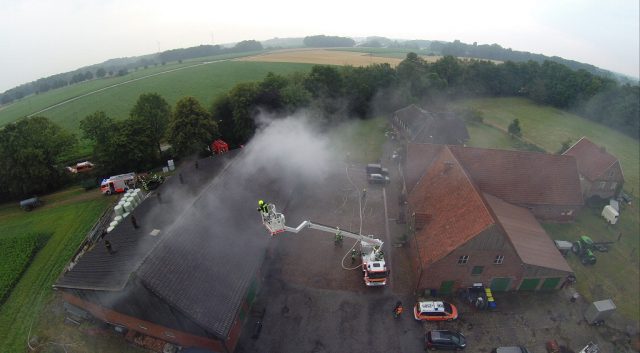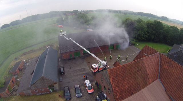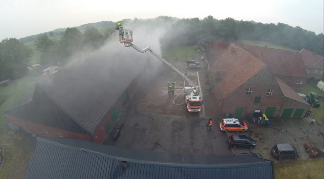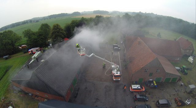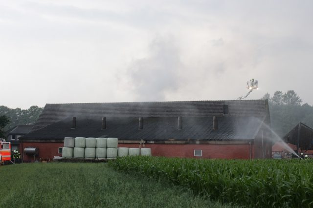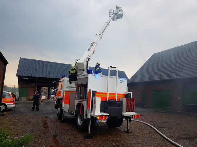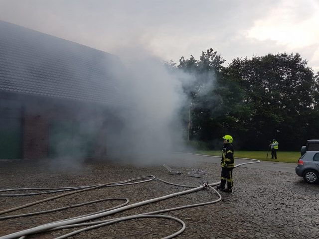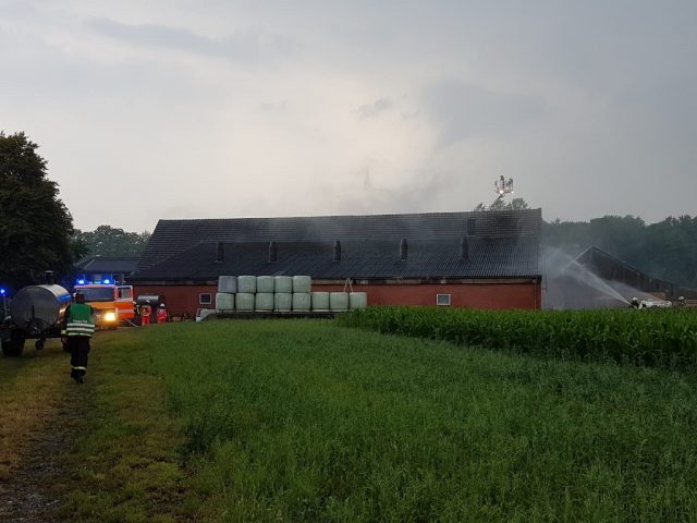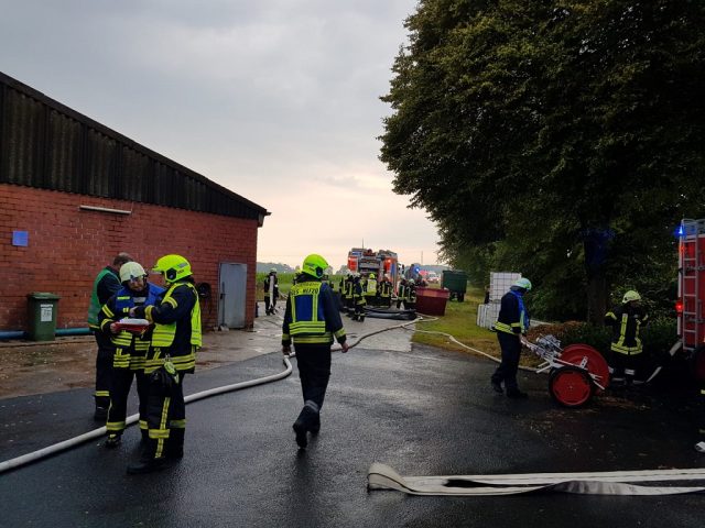 Angenommen wurde, dass eine Scheune auf dem Hof in Vollbrand stand. Es bestand eine Gefahr der Ausbreitung auf eine weitere Scheune sowie auf einen in der Nähe stehenden Gastank. Personen waren nicht in Gefahr.