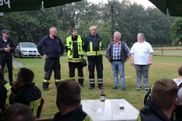 Ein besonderen Dank galt am Ende der Übung der Familie Bienias, die nicht nur Ihren Hof für die Übung zur Verfügung stellten, sondern auch im Anschluss Getränke und eine Wurst im Brötchen spendeten. Der Hofbesitzerein wurde zudem noch ein Geburtstagsständchen gesungen.