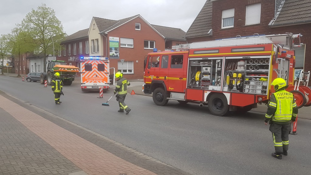 Gegen 12:30 Uhr wurde die Feuerwehr Gescher zu einem Verkehrsunfall mit 2 beteiligten Fahrzeugen, welche beim Abbiegevorgang kollidierten, gerufen. Bei