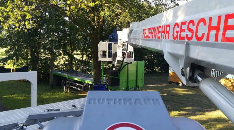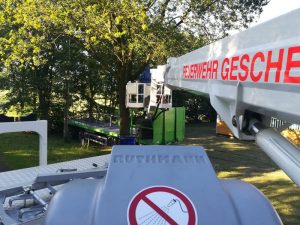 Die erste Unterstützung für das Ordnungsamt beim Entfernen von Eichenprozessionsspinner leistete die Feuerwehr Gescher am Mittwoch. Sie rückte mit dem Teleskopmast aus um erste Nester zu entfernen. Dabei trugen die Einsatzkräfte Einweganzüge sowie Filtermasken um sich vor den gefährlichen Nesselhaaren zu schützen. Die Nesselhaare der Raupen können bei Hautkontakt starke allergische Reaktionen auslösen, daher müssen die Raupen in öffentlichen Bereichen entfernt werden. Anschließend wurden die Saugerbeutel mit den Raupen sowie die Einmalschutzkleidung fachgerecht entsorgt.