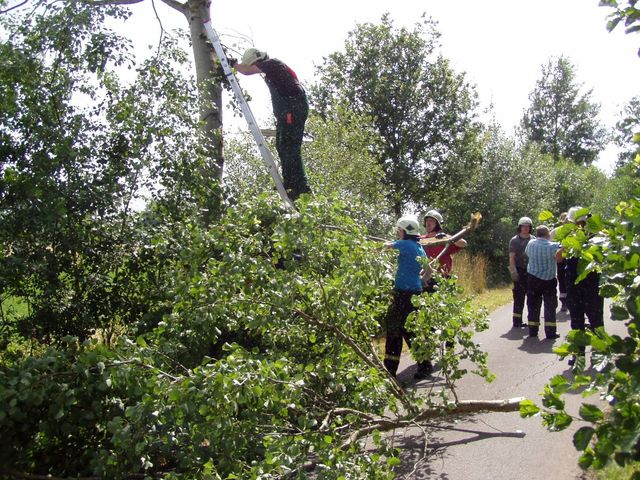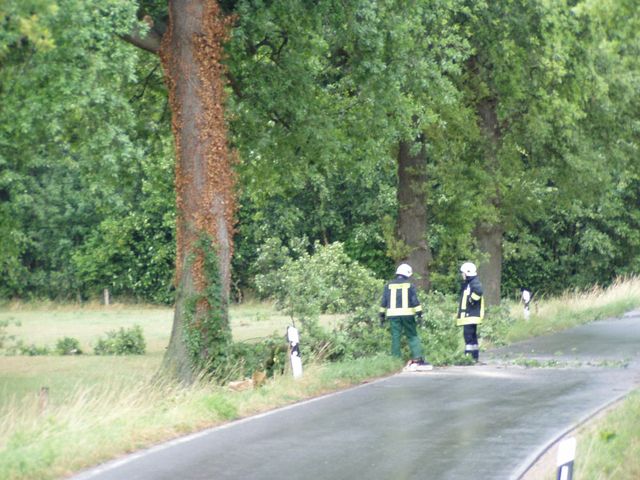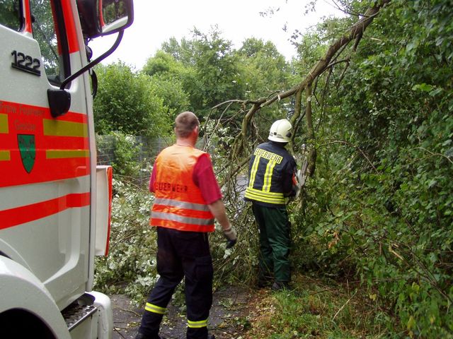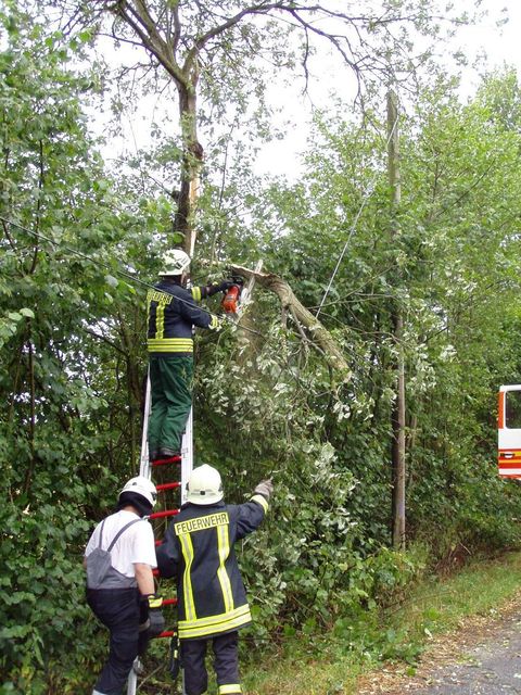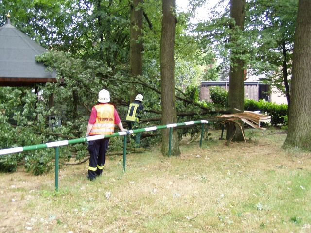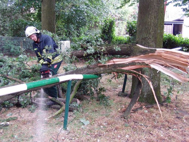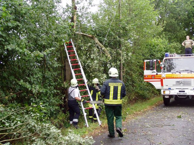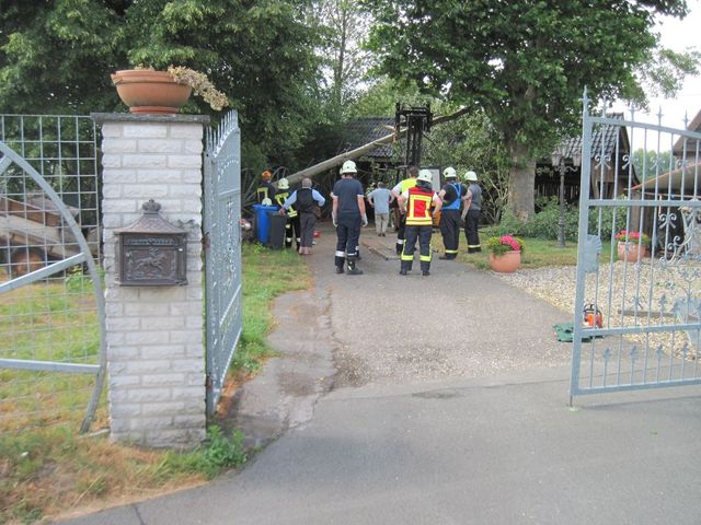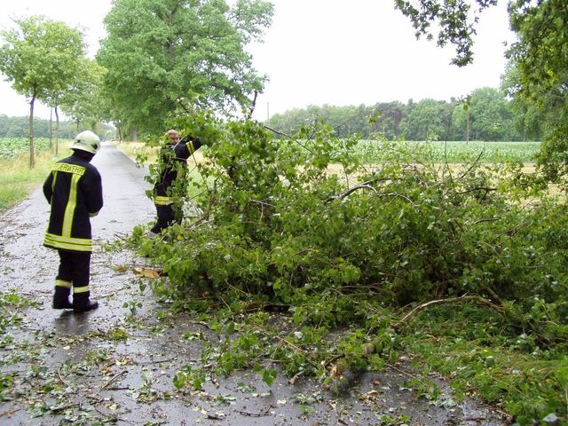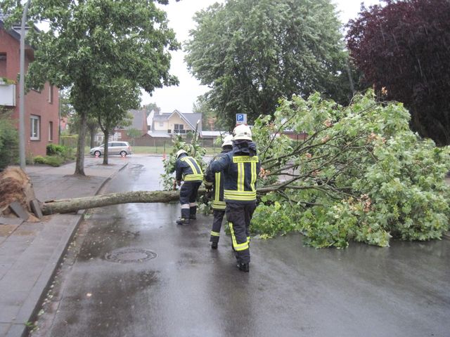 Das schwere Sommergewitter mit Sturmböen hat gestern auch in Gescher Spuren hinterlassen. Gegen 13 Uhr rückte die Feuerwehr zur Von-Galen-Straße aus, wo ein entwurzelter Baum zu beseitigen war. 35 Wehrmänner hatten danach stundenlang zu tun – bis zum späten Nachmittag wurden über 20 Einsätze in Gescher und Hochmoor gezählt. Fast überall bekamen es die Helfer mit entwurzelten Bäumen oder abgeknickten Ästen zu tun. Verletzte oder größere Sachschäden hat es laut Stadtbrandinspektor Christian Nolte nicht gegeben. Anders in Stadtlohn: Auf der L.608 stürzte ein Baum auf ein Auto – vier Menschen wurden verletzt.