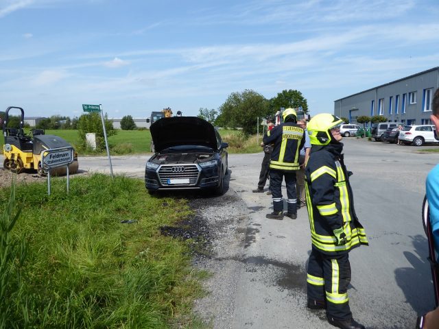 Gegen 13:45 Uhr wurde die Feuerwehr Gescher zu einem vermeintlichen PKW-Brand auf der Kreuzung Venneweg / Schildarpstraße alarmiert. Vor Ort stellte sich heraus, dass der PKW mit seinem Motorraum unbewusst über Grillkohle abgestellt wurde. Dadurch kam es durch den Motorraum hindurch zu einer Qualmentwicklung. Der Besitzer des Fahrzeuges konnte das Fahrzeug zurücksetzen und die Feuerwehr konnte die Kohle ablöschen. Anschließend wurde das Fahrzeug mit eienr Wärmebildkamera kontrollirt. Am Fahrzeug entstand eine kleine Beschädigung des Unterbodens durch die Hitze der Kohle. Warum sich auf dem Fahrbahnrand heiße Grillkohle befand konnte nicht geklärt werden.