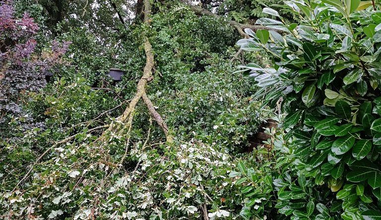 Gegen 8:30 Uhr wurde die Feuerwehr zu einem Mobilheim in Harwick gerufen worden. Dort war aus einem Baum ein großer Ast einer Eiche aus der Krone herausgebrochen und war auf ein Gebäude und einem Teich gefallen. Die Feuerwehr entfernte einige Äste aus einem Teich mittels Kettensäge, um die darin befindlichen Fische zu schützen. Anschließend wurde der Bereich abgesperrt. Die weitere Entfernung der Äste muss ein durch den Besitzer des Baumes beauftragtes Spezialunternehmen durchführen.