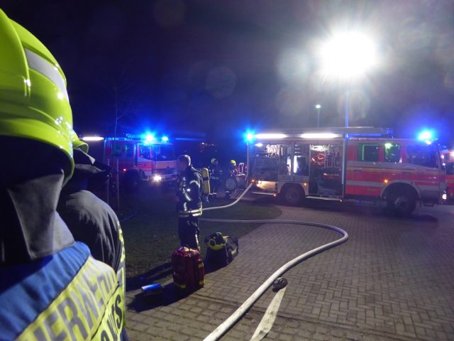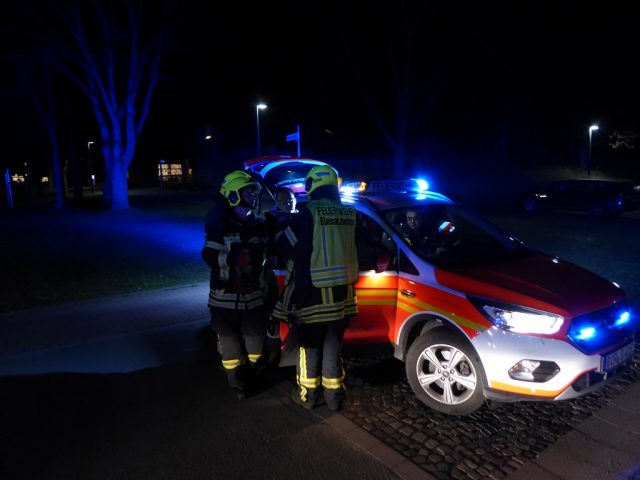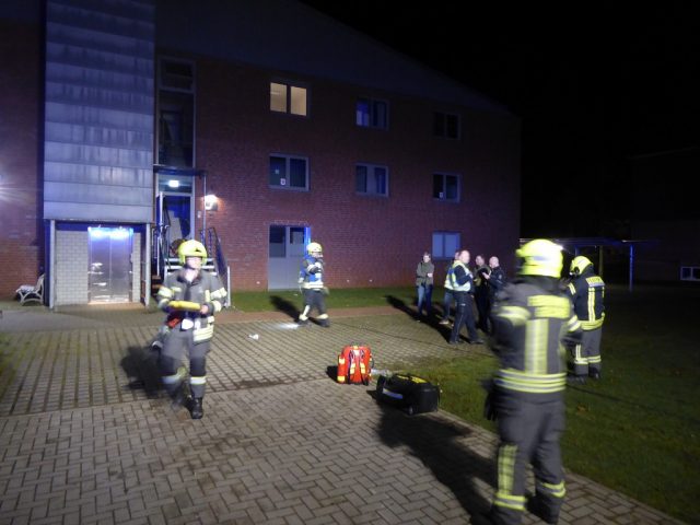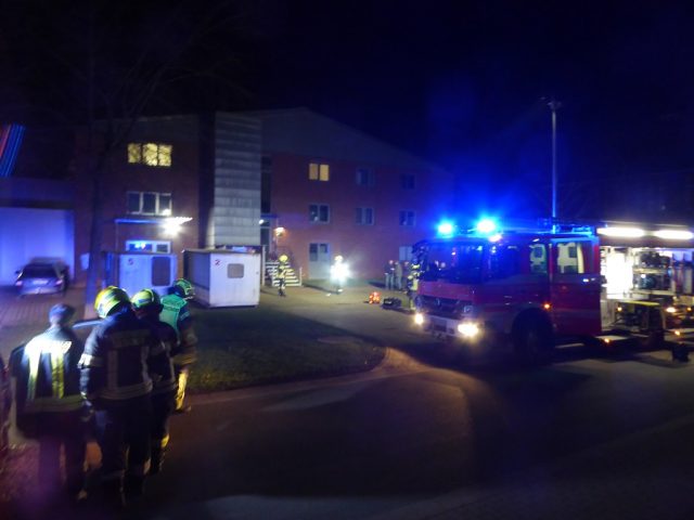 Gegen 20:15 Uhr wurde die Feuerwehr Gescher zu einem Stoffaustritt in einer Wäscherei in Tungerloh-Capellen gerufen. Vor Ort wurde ein beißender Geruch im Waschmittellager festgestellt. 3 Mitarbeiter hatten sich bereits selbstständig vor Eintreffen der Feuerwehr ins Krankenhaus begeben. Die Feuerwehr erhöhte daraufhin vorsorglich das Alarmstichwort , um mehr Einsatzkräfte in Bereitschaft zu haben. Ein erster Angriffstrupp ging unter Atemschutz zur Erkundung ins Waschmittellager im 2. OG vor und ein Hochleistungslüfter wurde eingesetzt um frische Luft ins Gebäude zu bringen. Nach Erkundung konnte ein Stoffaustritt eines hochdosierten und ätzenden Reinigungsmittel durch einen undichten Schlauch an einer Reininungsmitteldosieranlage festgestellt werden. In Absprache mit dem Fachberater Chemie, dem Ordnungsamt und dem Wasserwerk wurde das ausgetretene Mittel unter Atemschutz mit Chemikalienbinder abgebunden und im späteren Verlauf mit viel Wasser neutralisiert und über die Kanalisation entsorgt. Bei der abschließende Kontrolle wurde auf pH-Neutralität kontrolliert.