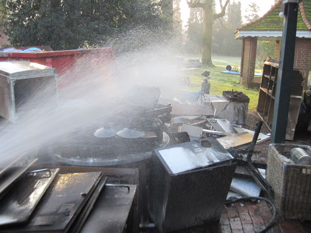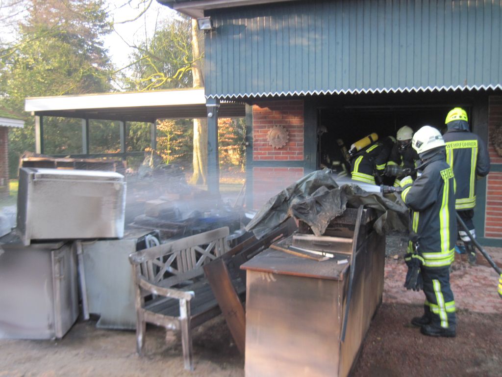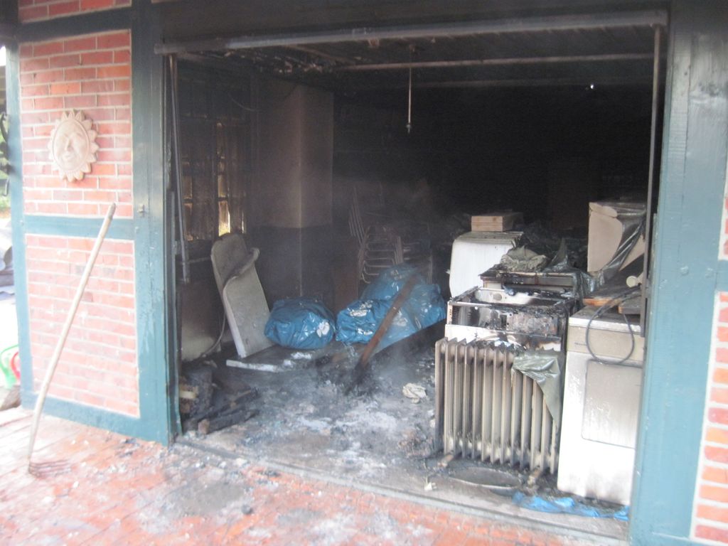 Handwerker bemerkten am Donnerstag morgen einen Brand in einer Garage an der Hofstraße und riefen die Feuerwehr. Vor Ort stellten die Kameraden einen Schwelbrand in der Garage vor. Unmittelbar an der Brandstelle in der Garage stand zudem noch eine Gasflasche. Die Kameraden brachten die Gasflasche ins Freie und kühlten die Falsche. Eine Kontrolle mit der Wärmebildkamera ergab, dass die Flasche nicht stark erhitzt war. Unterdessen konnte der Schwelbrand schnell gelöscht werden. Unter Atemschutz wurde dann die Garage ausgeräumt und alle Gegenstände abgelöscht. Eine abschließende Kontrolle des gesamten Gebäudes mit der Wärmebildkamera wurde durchgeführt. Der Einsatz war nach ca. 1 Stunde beendet. Es enstand ein Sachschaden von ca. 10.000 EUR.