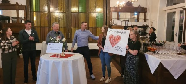Unsere Standard-Spendensumme ist normalerweise 112 € bei Projekten. Das war uns allerdings für dieses Projekt viel zu wenig, da wir wissen was so eine AED-Einheit kostet. Die anschließende Abstimmung in der Feuerwehr die Summe auf 1.000 € zu erhöhen war innerhalb weniger Minuten mit einem eindeutigen Ja beendet. Corinna Luters und Elke Lölfing haben zur Übergabe einen tollen Gutschein gebastelt, den Dirk jetzt im Namen aller Kameraden und Kameradinnen der Freiwilligen Feuerwehr Gescher überreichen darf.
