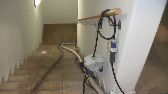 Der zweite Einsatz war bei dem Unternehmen develop. Ein Ausfall einer Pumpenanlage führte zu größeren Überflutungen im Keller mit Serverräumen und Aufzugsschacht. Mithilfe von der Fahrzeugpumpe und 3 weiteren Tauchpumpen wurde das Wasser abgepumpt.