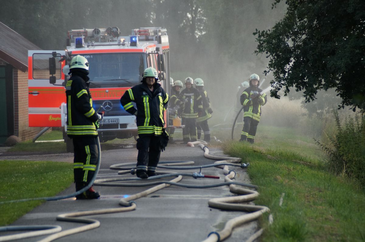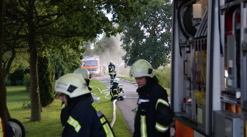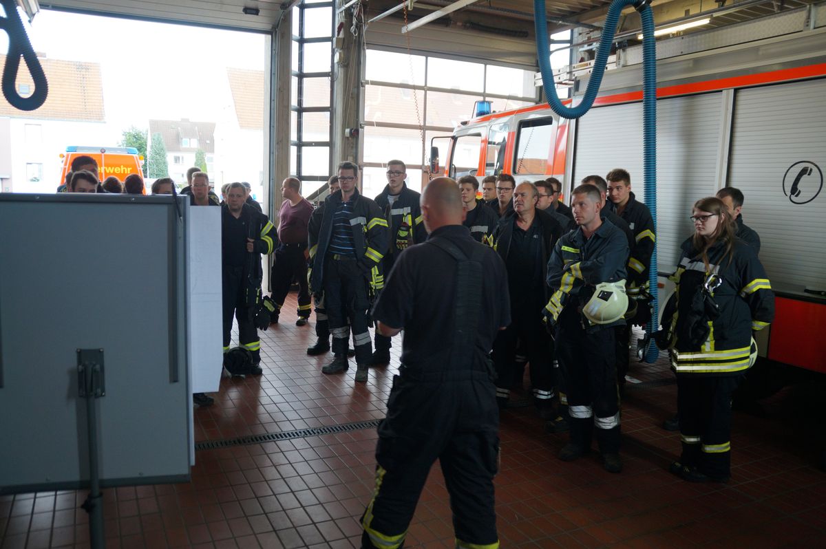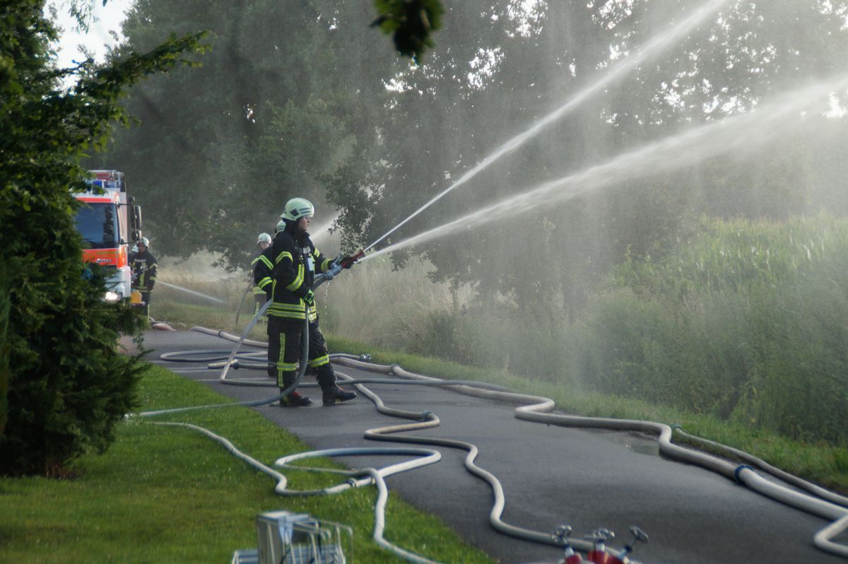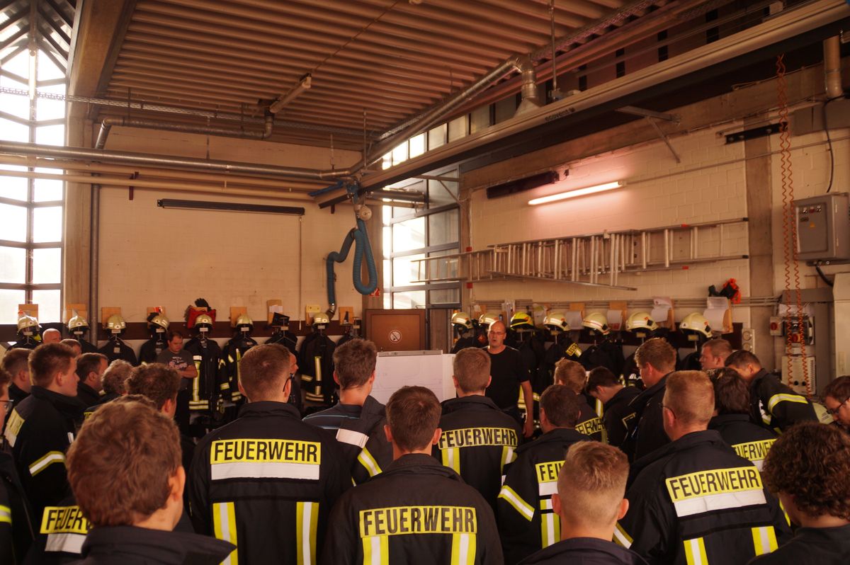 Die Übungsleiter Stefan Theseling und Ralf Blommel stellten in der Bauernschaft Tungerloh Pröbsting einen Scheunenbrand auf einem Landwirtschaftlichen Betrieb dar und hierfür musste die Mannschaft des Neuen die Wasserversorgung übernehmen. Während die anderen Fahrzeuge direkt die Einsatzstelle anfuhren um dort die vermeintlichen Patienten zu versorgen und erste Löschangriffe vornahmen, fuhr das LF 20 Kat zu einem Hydranten an der Straße Schultenrott. Von hier aus musste eine ca 900 Meter lange B-Schlauchleitung bis zur Einsatzstelle verlegt werden. Hierbei zeigte sich auch schon ein kleiner Vorteil des Neuen, auf dem Fahrzeug sind 320 Meter B-Schlauch so verlastet das sie während der Fahrt abgelassen werden kann. Die restlichen 280 Meter B-Schlauch vom Fahrzeug mussten aber wieder von Hand ausgerollt werden. Nach den 600 Metern wurde das Fahrzeug als Zwischenpumpe eingesetzt. Die restlichen ca 300 Meter Schlauchleitung wurden in der Zwischenzeit von der Einsatzstelle in Richtung Wasserentnahmestelle verlegt.
